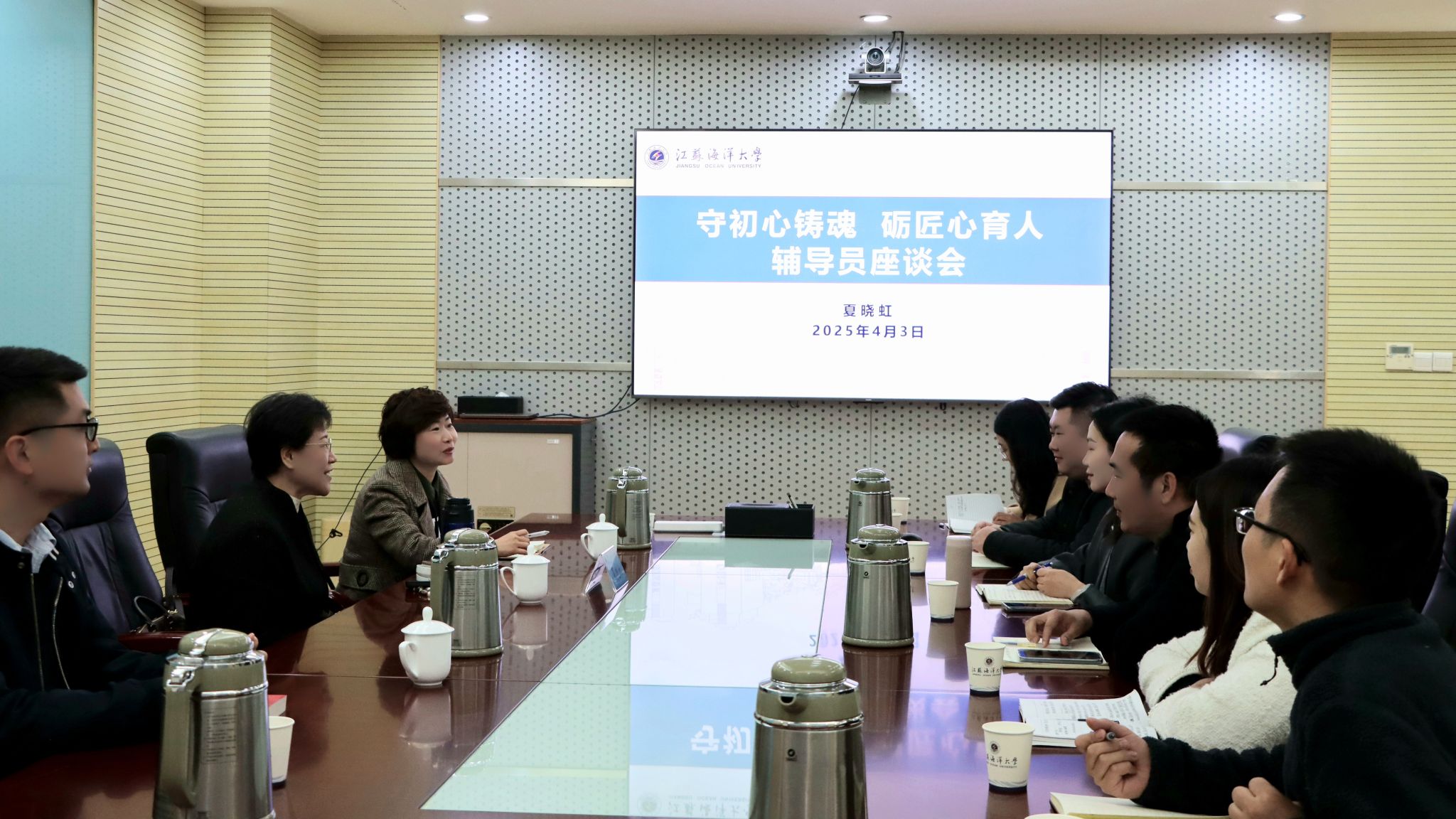 我校在会议中心渤海厅举办“守初心铸魂 砺匠心育人”专题座谈会。座谈会上,“同舟前行”辅导员素养提升工作室负责人周琦就工作室建设及辅导员职业能力发展向夏晓虹教授请教。夏晓虹强调,辅导员需在日常工作中“多学、多写、多练、多总结”,以扎实的实践积累提升职业自信与驾驭能力。她建议工作室聚焦实际问题,以解决学生困难为根本目标,打造育人实效突出的特色品牌。“萤光心语”心理育人工作室负责人蒋莹莹就“思想教育与心理健康工作协同路径”向夏晓虹教授求教。夏晓虹以谈心谈话为例,提出三点建议:一是坚持分类指导,针对不同学生群体精准施策;二是善用数据思维,通过科学分析把握学生需求;三是力求实效,以问题为导向提升育人效果。她指出:“辅导员要不断提高自身的核心竞争力,努力做到人无我有,人有我优,人优我特。”