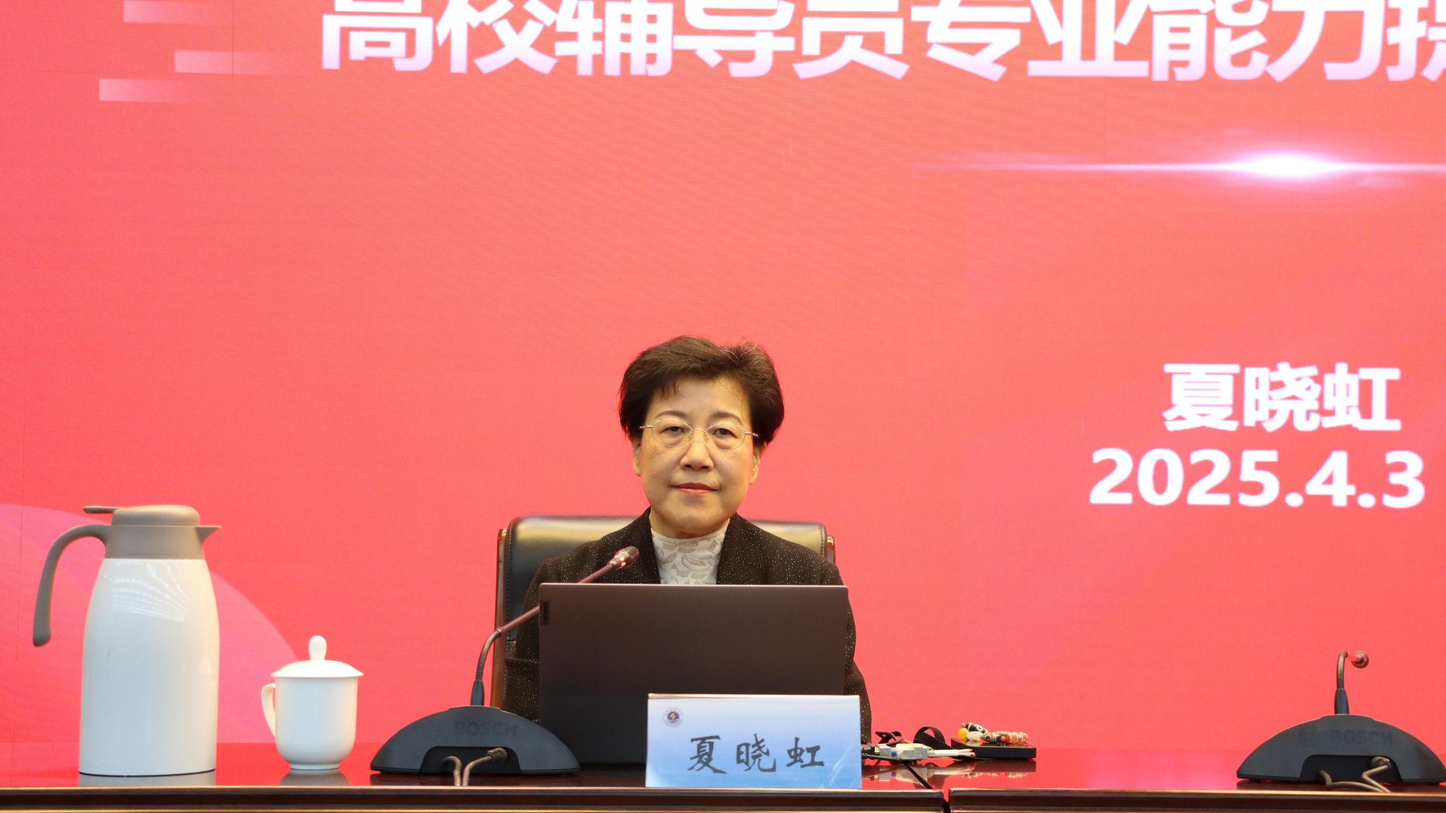 夏晓虹从高校辅导员的思想政治教育能力、辅导员专业能力提升中的“忧”与“愁”以及辅导员主动提高胜任力三个方面,细致分析了辅导员职业的角色定位和专业属性。她鼓励辅导员要扎根日常思想政治教育工作,反复实践,不断积累,持续提升职业能力和专业技能;要提高政治素养,明晰职业价值观,熟悉职业特色和需求,培养主动学习的意识与创新思维,充分释放育人潜力;要勤学善思、勤耕善研,紧盯学术前沿,精准把握创新点,善用数据分析,积极提升工作胜任力。