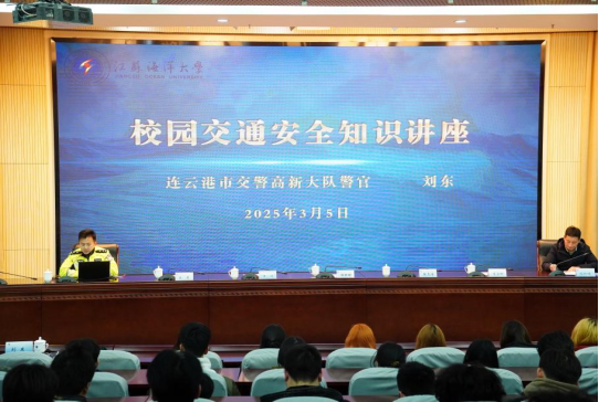 3月5日,活动启动仪式在学术会议中心黄海厅举行。连云港市交警高新大队大队长郭明旺、保卫处、学生工作处及各二级学院师生代表等300余人参加活动。保卫处副处长孙祖皓结合近年来高校交通安全典型案例,系统阐述了校园交通安全工作的重要意义。连云港市公安局交警支队高新大队刘东警官为大家做交通安全知识讲座。刘东通过警示案例视频、法规解读等形式,重点剖析了超速行驶、违规变道等违法行为的危害性,针对校园交通特点,就电动自行车规范骑行、夜间出行安全防护等实用知识进行专业指导。