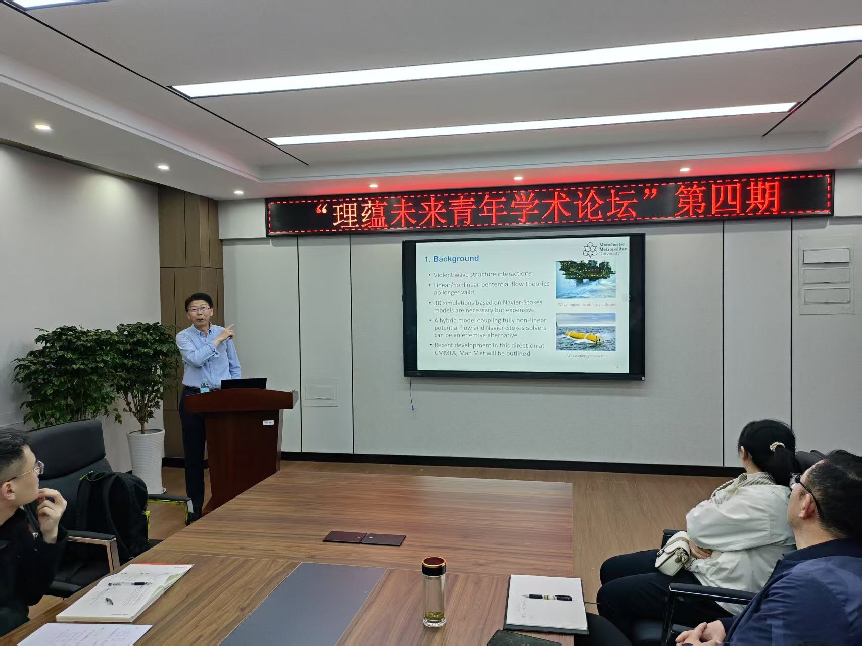 史林兴表示,本期论坛以“海洋国际+”为纽带,精准锚定三大价值维度:一是聚焦海洋势流理论创新,解码数值模拟技术对海洋工程研究的范式突破;二是强化学科交叉融合,通过前沿研讨激荡思维,直击数学物理方法与海洋科技深度融合;三是深化“海洋+”战略纵深推进,以理论-技术-应用的全链条创新赋能学科生态升级。他强调,系列论坛持续聚焦“海洋+”学科群建设,既彰显了数学、物理等基础学科与海洋科技深度融合的战略价值,也为青年教师锚定国家“海洋强国”需求、探索跨领域协同创新提供了实践范式。钱岭教授作为曼彻斯特城市大学的国际知名学者,其研究成果不仅为学院学科发展注入前沿视角,更通过国际化科研合作网络,推动“海洋+”学术品牌与国际海洋科技前沿接轨。