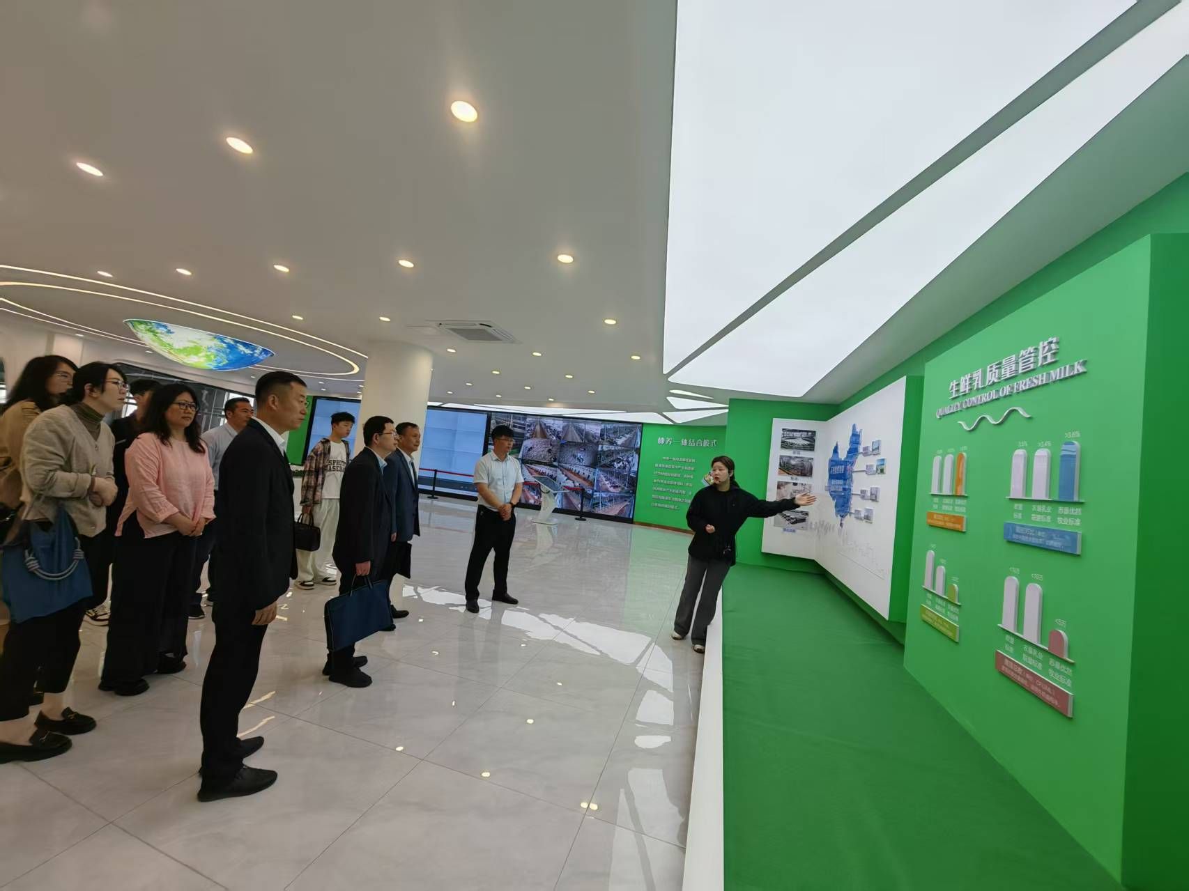 学院一行走进惠丰生物肥料有限公司的生产车间,实地考察企业利用畜禽粪污研发有机肥料与复合微生物肥料等情况,详细了解企业的发展历程、运行现状、行业发展趋势、企业技术创新和用人需求等。随后,在江苏省东辛农场有限公司产业部部长孙善加的陪同下,参观调研万头奶牛生态牧场和江苏农垦农产品检测有限公司,了解东辛农场在畜牧业生态循环和智能化生产方面情况,以及东辛粪污资源化利用等技术在牧场的绿色生态发展和智慧牧场建设的广泛应用。
