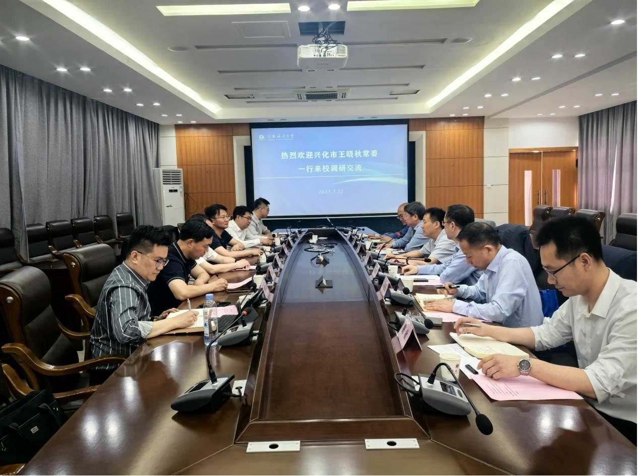5月12日下午,江苏省兴化市委常委王晓秋带领兴化市临城街道党工委书记房俊、安丰镇党委书记顾小兵一行来我校调研交流。副校长徐军田出席交流会,海洋科学与水产学院党政班子及教师代表参加会议,海洋科学与水产学院党委书记黄金虎主持会议。