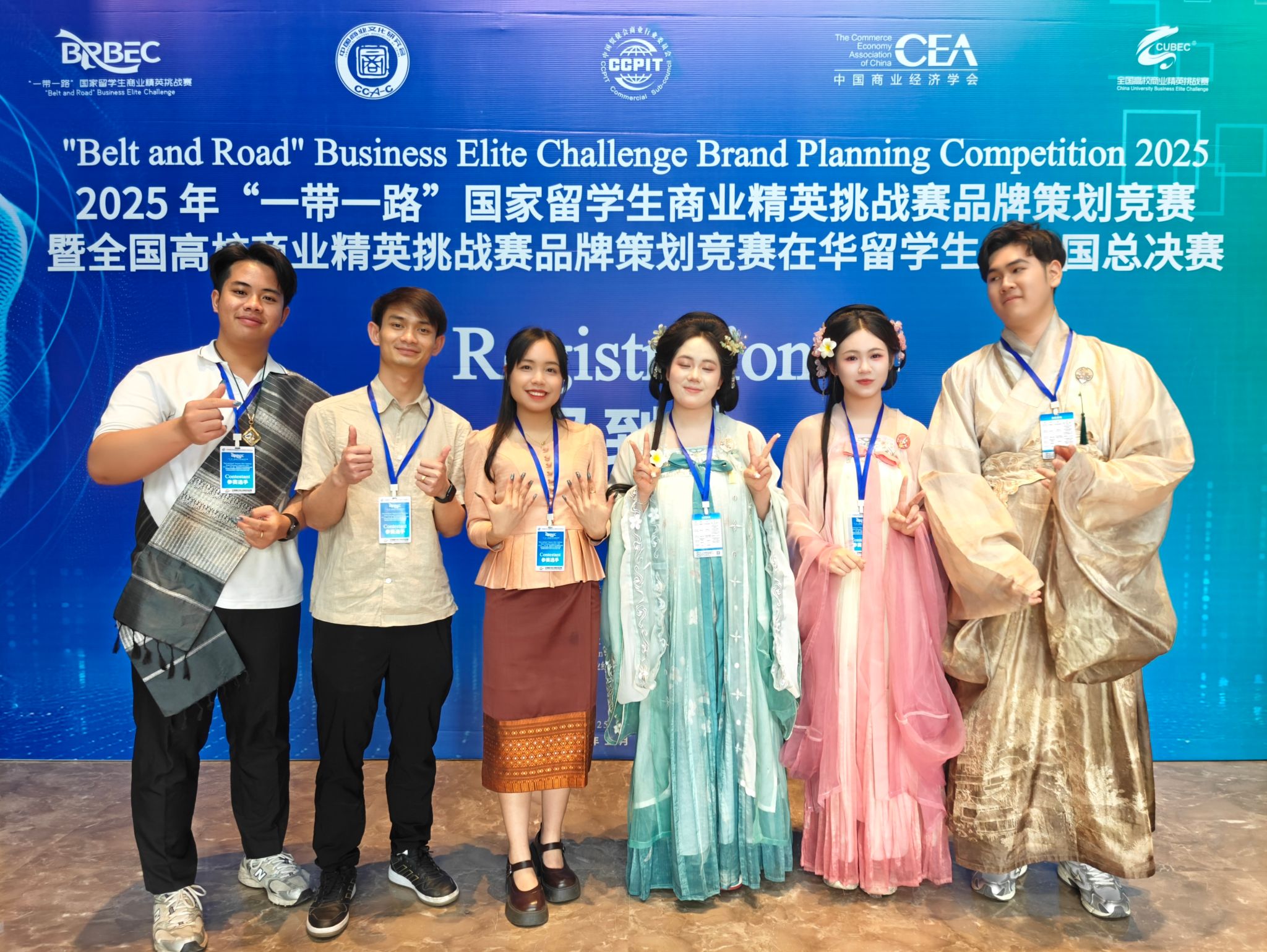 5月13日,由中国国际贸易促进委员会商业行业委员会主办的2025年"一带一路"国家留学生品牌策划竞赛在西安盛大举行。来自51个国家500余名选手同台竞技。经过多轮选拔,全国36所高校65支队伍晋级总决赛,我校两个留学生团队凭借创新策划脱颖而出,分获全国总决赛二等奖和三等奖,展现了我校国际化人才培养的显著成果。