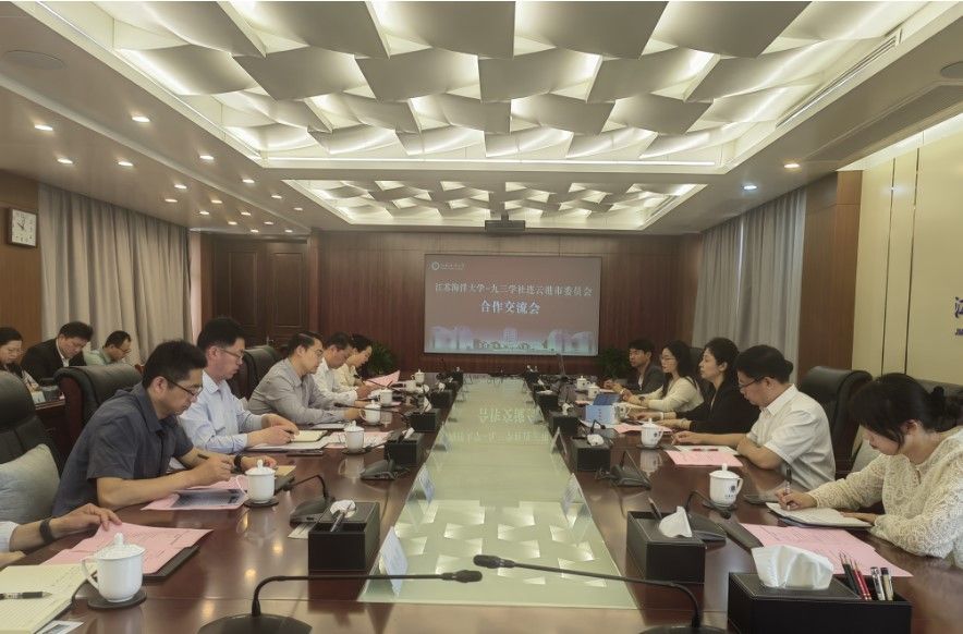 5月16日上午,我校与九三学社连云港市委员会合作交流座谈会在行政楼五楼会议室举行。校党委常委、副校长申欣,连云港市人大常委会副主任、九三学社连云港市委会主委杨光,九三学社连云港市副主委、市科技局副局长郑刚出席。校科学技术处处长戴红伟主持交流会。