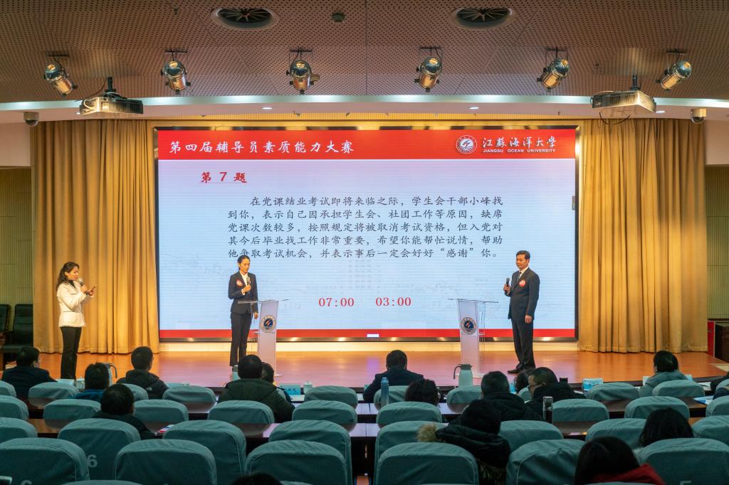 为提高我校辅导员队伍的理论和实践水平,加强队伍专业化、职业化建设,展示辅导员整体素质和精神风貌,通过比赛达到以赛促练、以赛促训、以赛促研的目的,我校举办了第四届辅导员素质能力大赛。12月24日下午,此届比赛的决赛在会议中心黄海厅举行。