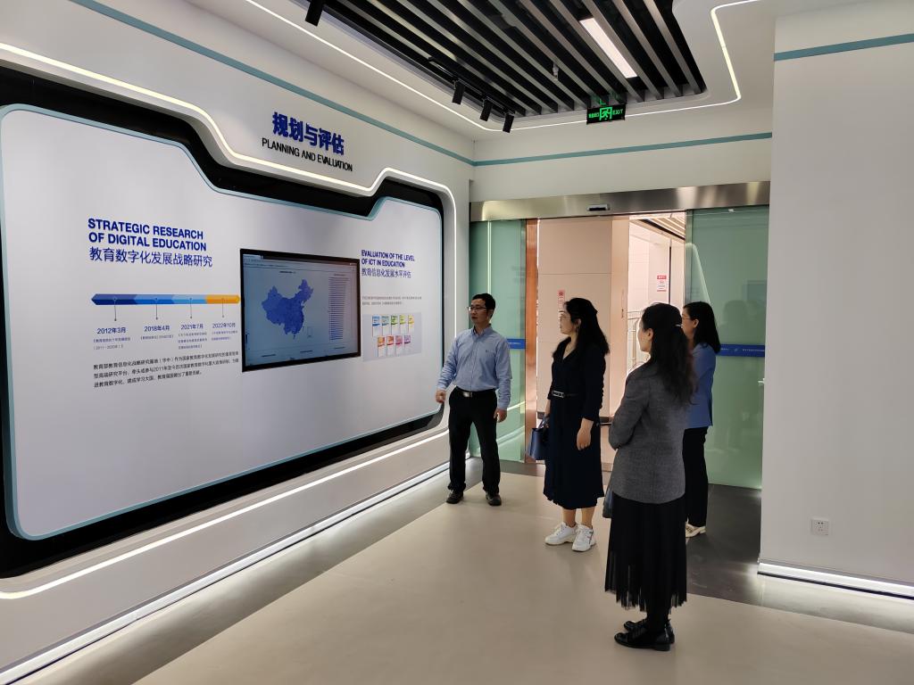 4月15日上午,王晶和党政办主任温德育、学工办主任周琦前往华中师范大学人工智能教育学部,围绕“基层党建工作双创和学生思想政治工作创新”等展开调研学习。华中师范大学人工智能教育学部党委书记罗丽华介绍了学部建设和发展概况,着重交流了“人工智能+”党建思政工作新模式、全国“标杆院系”和“样板支部”创建、基层党建和业务互融互促等经验和举措。学部副书记黄涛介绍了学生思想政治工作的特色做法和工作成效。副教授舒江波为大家演示了学部“人工智能”系统,介绍了该系统在“人工智能+教育”复合型人才培养中的作用和成效。双方结合调研主题就基层党建和人才培养中的热点和难点问题进行了深入探讨和交流。调研组一行还参观了该校教育大数据应用技术国家工程研究中心和人工智能教育学部智慧党建展厅。通过本次调研学习,大家在加强基层党建引领事业发展和促进人才培养等方面的理念、模式、载体和方法创新方面收获了很多有益的启示。