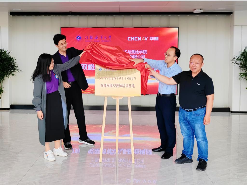 4月16日,在华测导航技术有限公司上海总部的时空智能展厅,公司副总裁胡炜先生为大家详细介绍了上海华测导航技术有限公司技术创新和主要产品应用等情况,公司人力资源总监兼高级副总裁沈礼伟陪同。会后,王晶、孙佳龙和胡炜、沈礼伟共同为“江苏海洋大学海洋技术与测绘学院产教融合实践创新教育基地”揭牌。