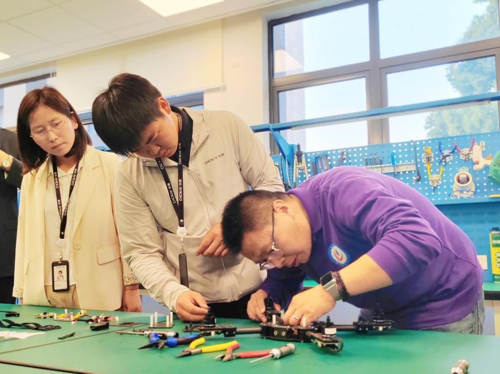 4月15日,在华测导航技术有限公司高级副总裁兼武汉研发基地负责人袁本银的陪同下,大家参观了公司武汉基地的智能展厅、三维智能和海洋产品产线,听取了产品生产和应用介绍,就华测导航高校实验室建设和产品应用方案进行了研讨交流,双方同意建设江苏海洋大学海洋技术与测绘学院双师双能型教师培训基地并挂牌。当天下午,大家前往武汉华测导航无人机学院接受培训,学习固定翼和三类旋翼无人机模拟驾驶和数据处理技术,在教练的指导下组装无人机,亲自体验无人机驾驶技术。