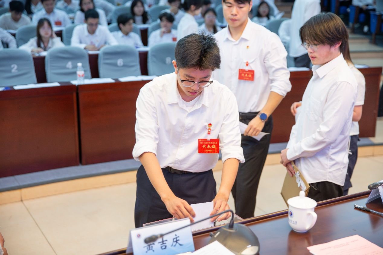 江苏财会职业学院学生会主席团成员王诗惠同学代表兄弟院校致贺信。学代会、研代会分别前往会议中心黄海厅、东海厅召开正式会议。学生会执行主席吕修祥、研究生会执行主席马源分别代表上一届学生会、研究生会向大会作工作报告。全体与会代表投票选举新一届学生会、研究生会主席团成员。