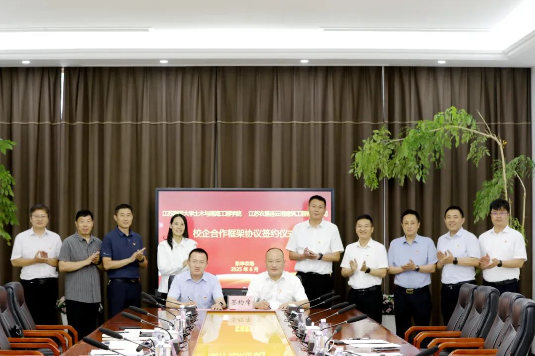 在深入交流研讨后,朱文谨与江苏农垦连云港建筑工程有限公司负责人丁百鑫正式签订产学研合作框架协议。双方将以此次签约为起点,深化产学研协同创新,为区域经济发展贡献更多力量。