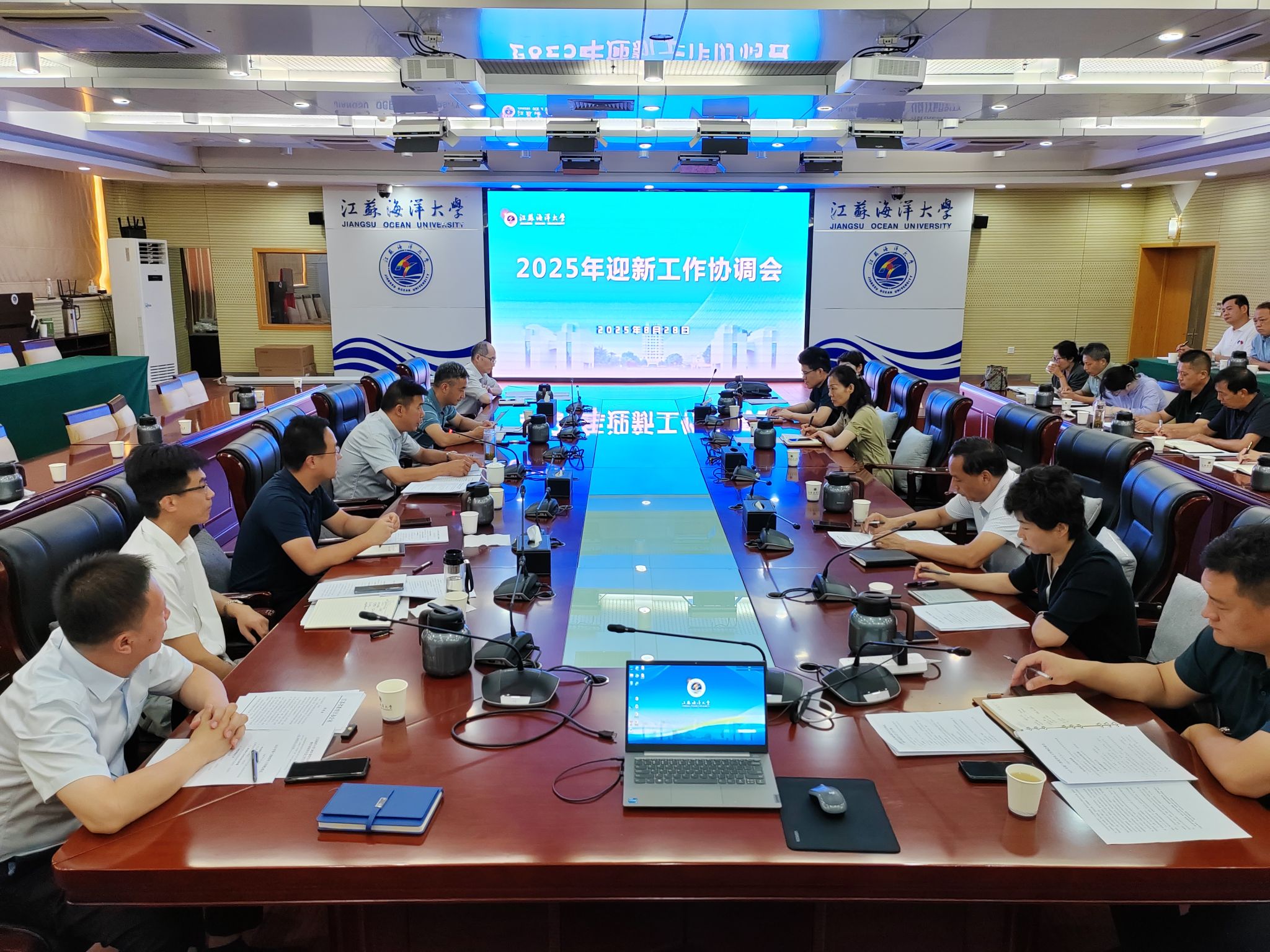会上,学生工作处对《江苏海洋大学2025年迎新工作方案》《江苏海洋大学2025级学生开学典礼暨军训动员大会工作方案》进行解读和说明,重点介绍迎新和开学典礼时间安排、工作流程、任务分解和注意事项等内容。与会人员对方案做了进一步的补充,并就迎新宣传品制作、迎新场地布置、新生体检及医疗保险、开学典礼条件保障等具体工作进行了协调沟通。