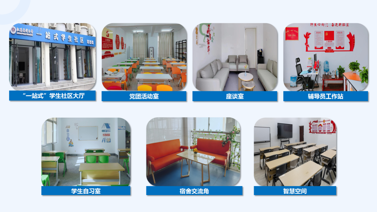 我校“一站式”学生社区文化建设以五育并举为主线推进“社区赋能+文化浸润”,通过优化社区空间、丰富育人内容等途径,着力实现“形”与“神”的有机统一,以“形”的载体,“神”的浸润,打造出既有颜值又有内涵、既有温度又有深度的学生社区文化,助力学生全面成长。
