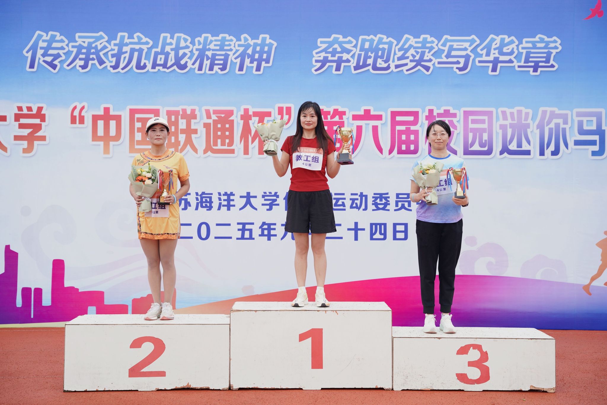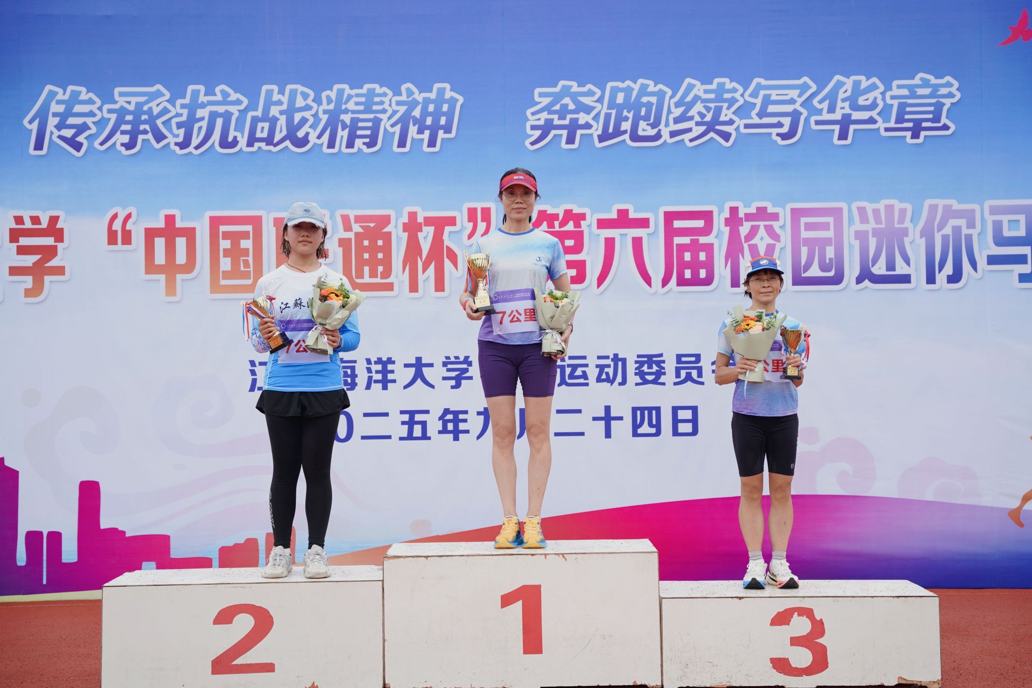 传承抗战精神,奔跑续写华章。9月24日下午,江苏海洋大学第六届校园迷你马拉松比赛在秋雨中燃情开跑。校党委副书记李梅英、副校长金芙蓉出席本次开幕式。