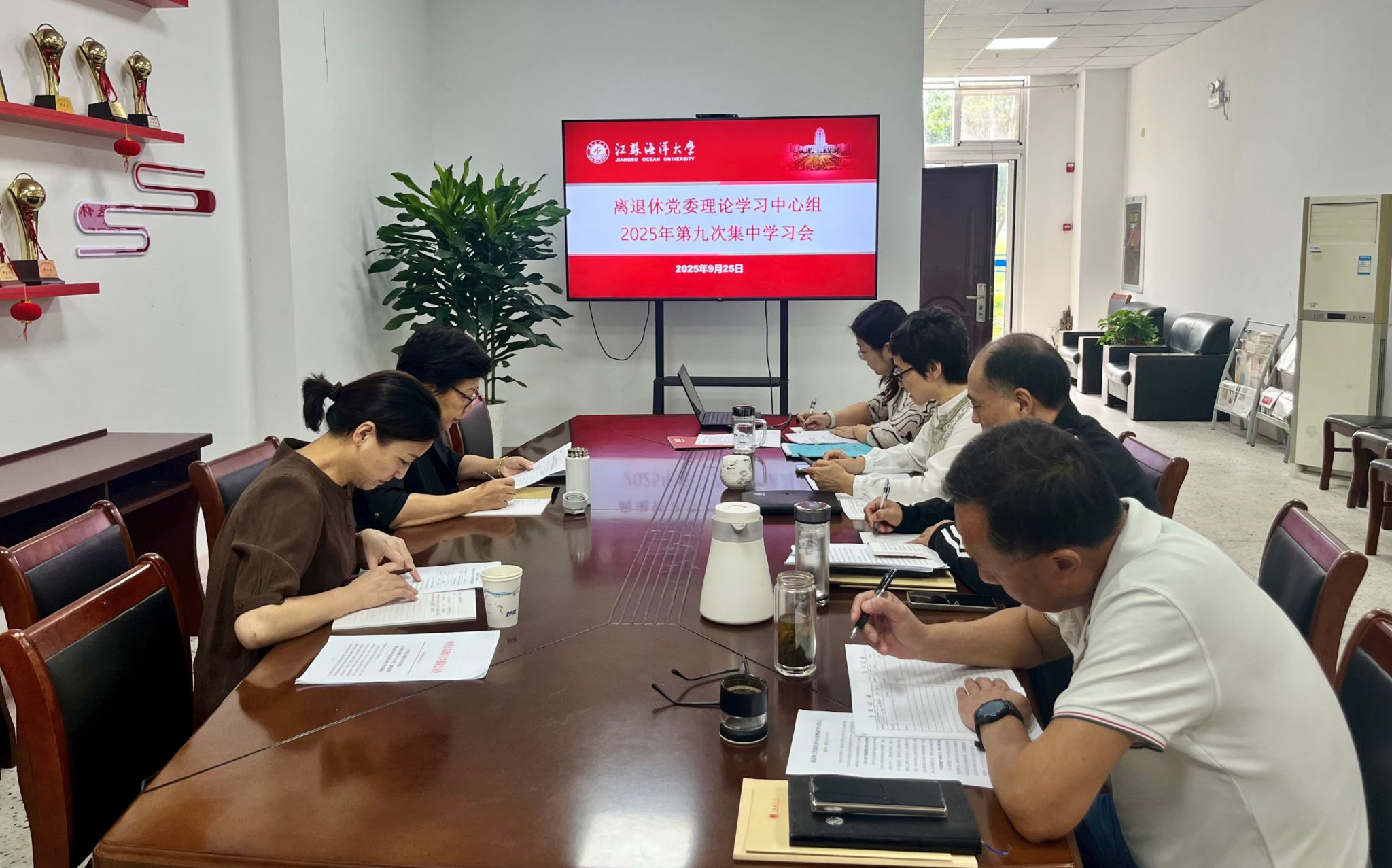 9月23日上午,离退休党委在筑海楼104室召开理论学习中心组第九次集中学习会。