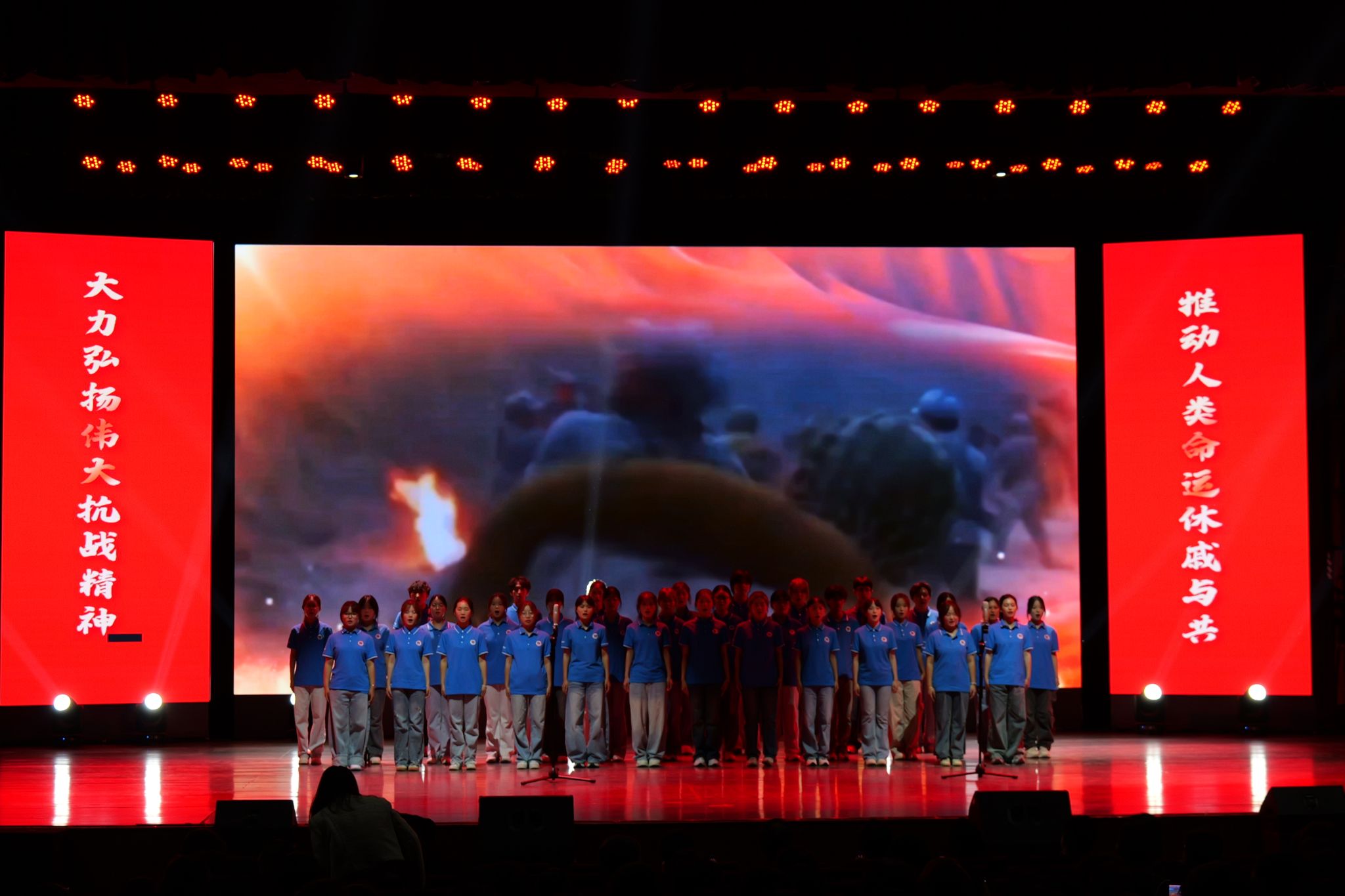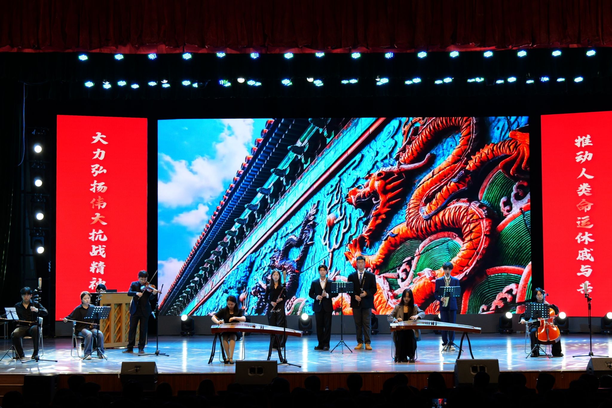 此次活动由党委宣传部、校团委、马克思主义学院和校关工委共同举办,将思想引领与红色音乐相融合,深入挖掘抗战时期历史故事中蕴含的英雄事迹和新时代育人价值,通过“音乐+思政”的呈现方式引领青年学生学习传承抗战精神。