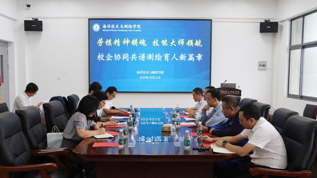 10月11日上午,海洋技术与测绘学院以“劳模精神铸魂・技能大师领航校企协同共谱测绘育人新篇章”为主题,在测绘楼508召开交流研讨会。中交一航局人力资源部副总经理、培训中心主任陈德龙率全国劳模、大国工匠、国家级技能大师陈兆海及中交一航局刘兆权、徐文星,上海绘海仪器有限公司总经理常委锋等多位领导嘉宾参会,校党委副书记李梅英出席会议并致辞,校工会主席王晶、海洋技术与测绘学院院长孙佳龙、副院长王晓、测绘工程专业师生代表共同参加研讨交流。会议由学院党委副书记(主持工作)司成伟主持。
