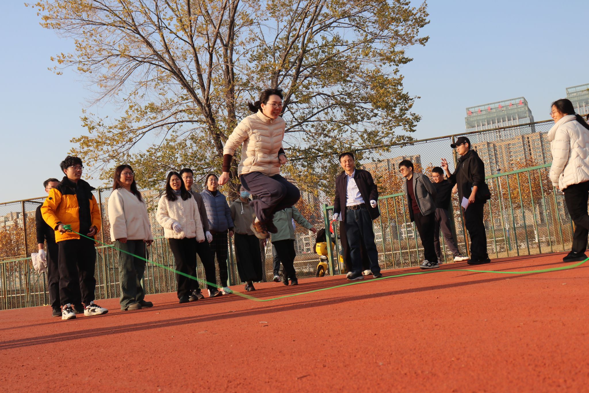 本次活动分为“励学队”“笃行队”“团结队”“奋进队”四组,教师们以“趣味竞技、快乐同行”为宗旨,设置多向拔河、竞速毛毛虫、摸着石头过河接力赛、 多人跳大绳、沙包投掷盘等多个兼具趣味性与协作性的项目。赛场上,老师们暂时卸下教学科研的压力,全身心投入到游戏中,时而奋力拼搏,时而默契配合,时而欢声笑语,充分展现了环境与化学工程学院教职工们积极向上、团结协作的良好精神风貌。