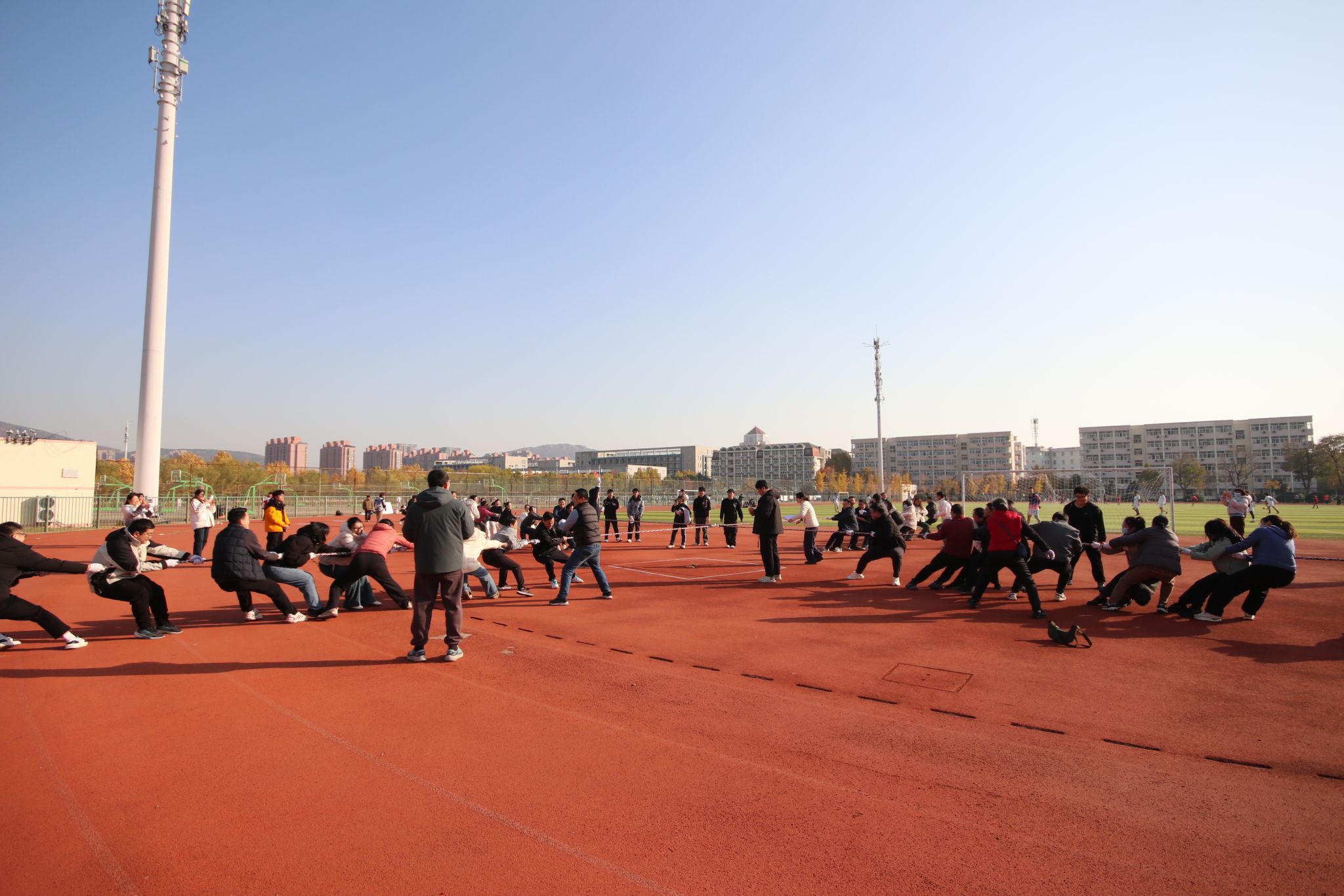 为增强教师间的沟通协作,缓解工作压力,营造积极向上、团结和谐的学院文化氛围,助力学院高质量发展,11月26日下午,环境与化学工程学院举办“励学笃行 团结奋进 共助高质量发展新篇章”2025年度教职工拓展实践活动。学院全体教职工踊跃参与,大家以饱满的热情投入到这场充满趣味与挑战的团队盛宴中。