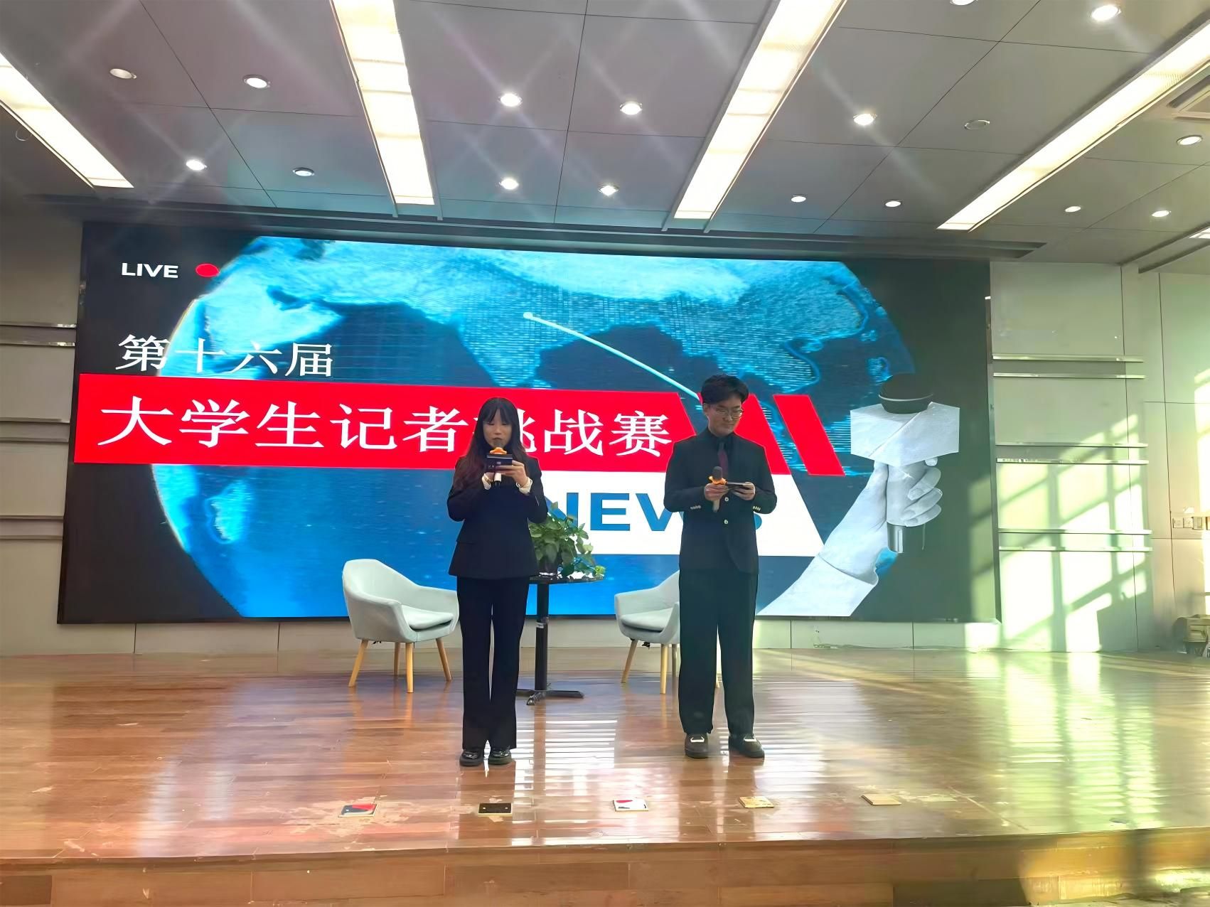 决赛设置了“现场访谈”“好记者讲好故事”“新闻述评”三大环节,分别从临场沟通、故事讲述、热点思辨等维度,综合考察选手的专业素养与综合能力。本次记者挑战赛还邀请了我校八名出类拔萃的学子作为受访嘉宾,他们在科学研究、社会服务、学科竞赛、文艺体育等方面都取得了引人瞩目的成绩。