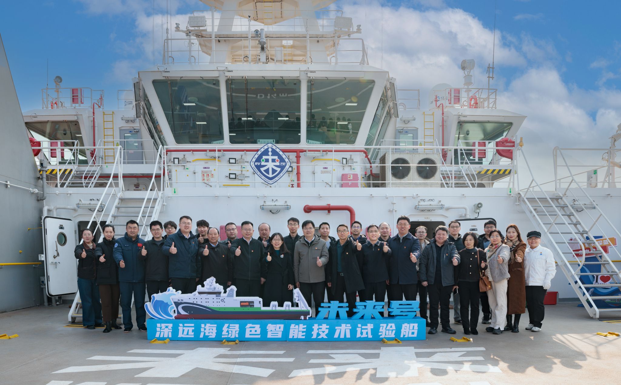 据悉,“未来”号是国内首艘深远海绿色智能技术试验船,该船搭载我国自主研发的智能信息系统,能实现全船试验装备数据的实时采集、存储、计算、管理、分析及应用,是一艘可满足各类深海装备、海试验证、机动搭载与作业保障需求的船舶。在学校去年举办的深化“蓝海红帆 强链兴海”行动暨海洋产业链党组织对接大会上,学校已依托 “未来” 号设立蓝色思政基地。