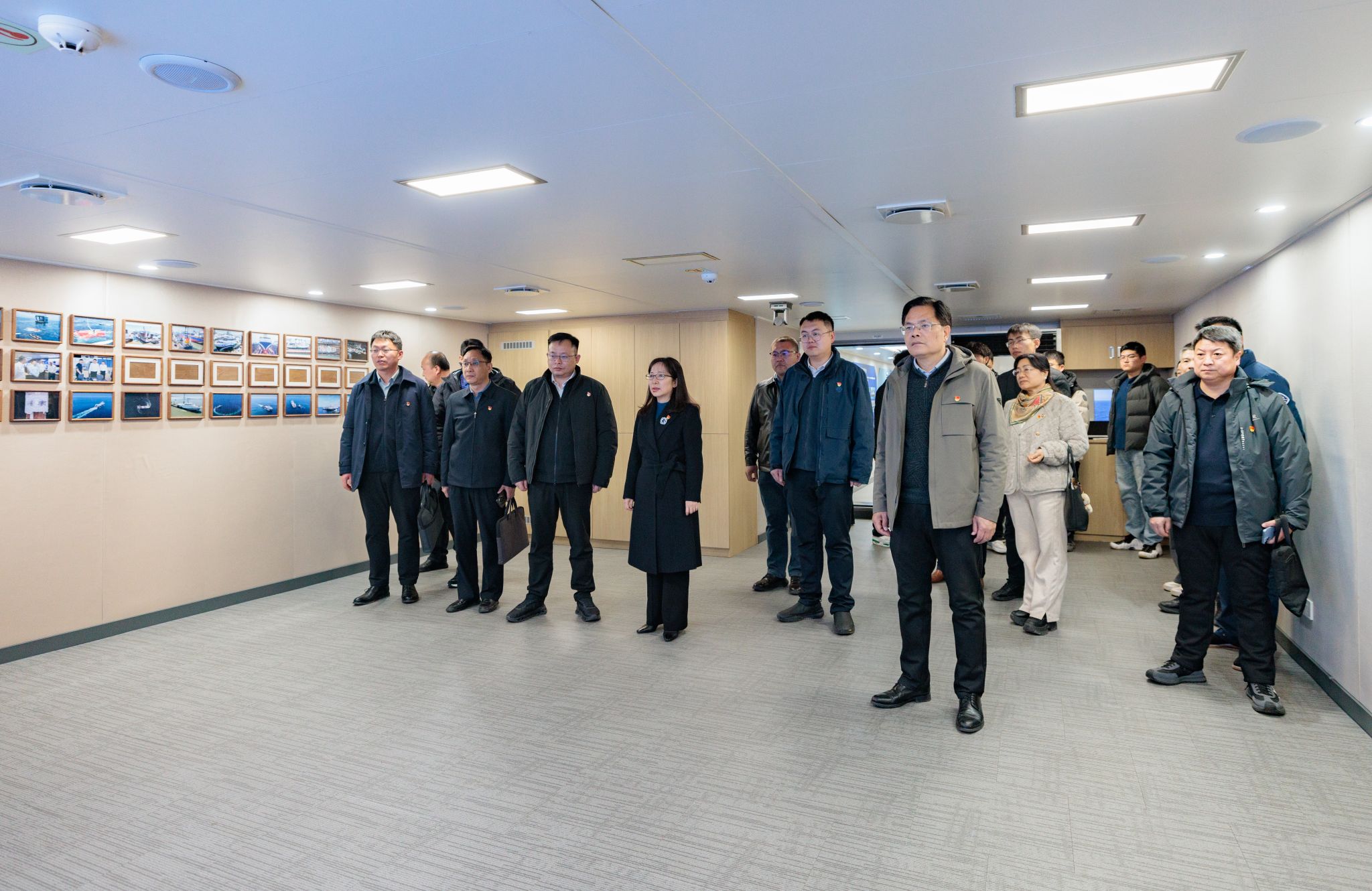调研期间,在“未来”号相关负责人的引导下,我校师生先后参观了船舶驾驶台、智能机舱,详细了解该船的建设历程、核心功能、技术优势及产业价值。