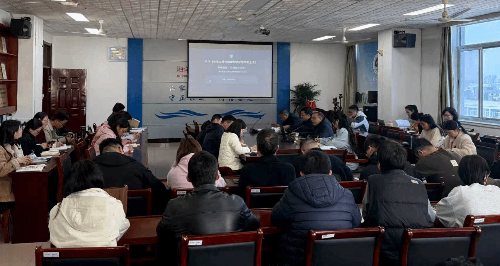 为强化实验室安全管理,提升全体教职工危险化学品安全法治意识,3月25日,海洋食品与生物工程学院召开全体教职工大会,专题学习《中华人民共和国危险化学品安全法》。会议由学院党委书记张兵主持,副院长(主持工作)盘赛昆作专题宣讲,全院教职工参加学习。