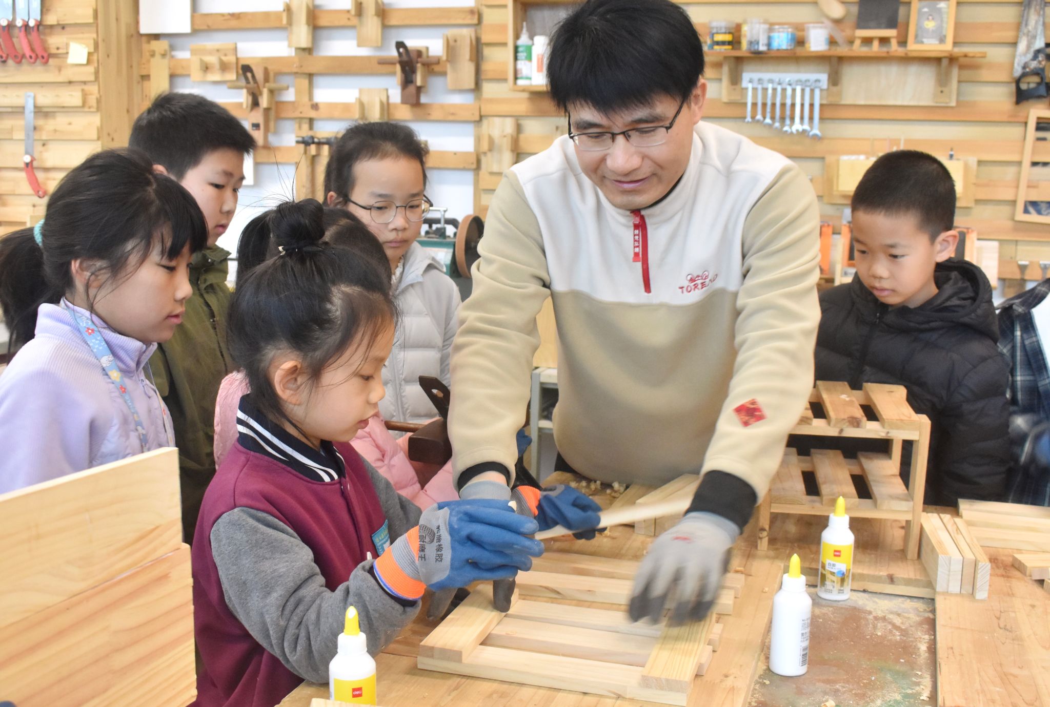 木艺课堂上,艺术设计学院于连杰老师为孩子们准备了安全易用的工具,专业老师手把手教学,从认识木材纹理,到学习简单的打磨、拼接技巧,一步步带领孩子们解锁木艺创作,不仅锻炼了动手能力和专注力,更让孩子们体会到“慢工出细活”的满满成就感,在匠心造物中感受自然与手工的美好。