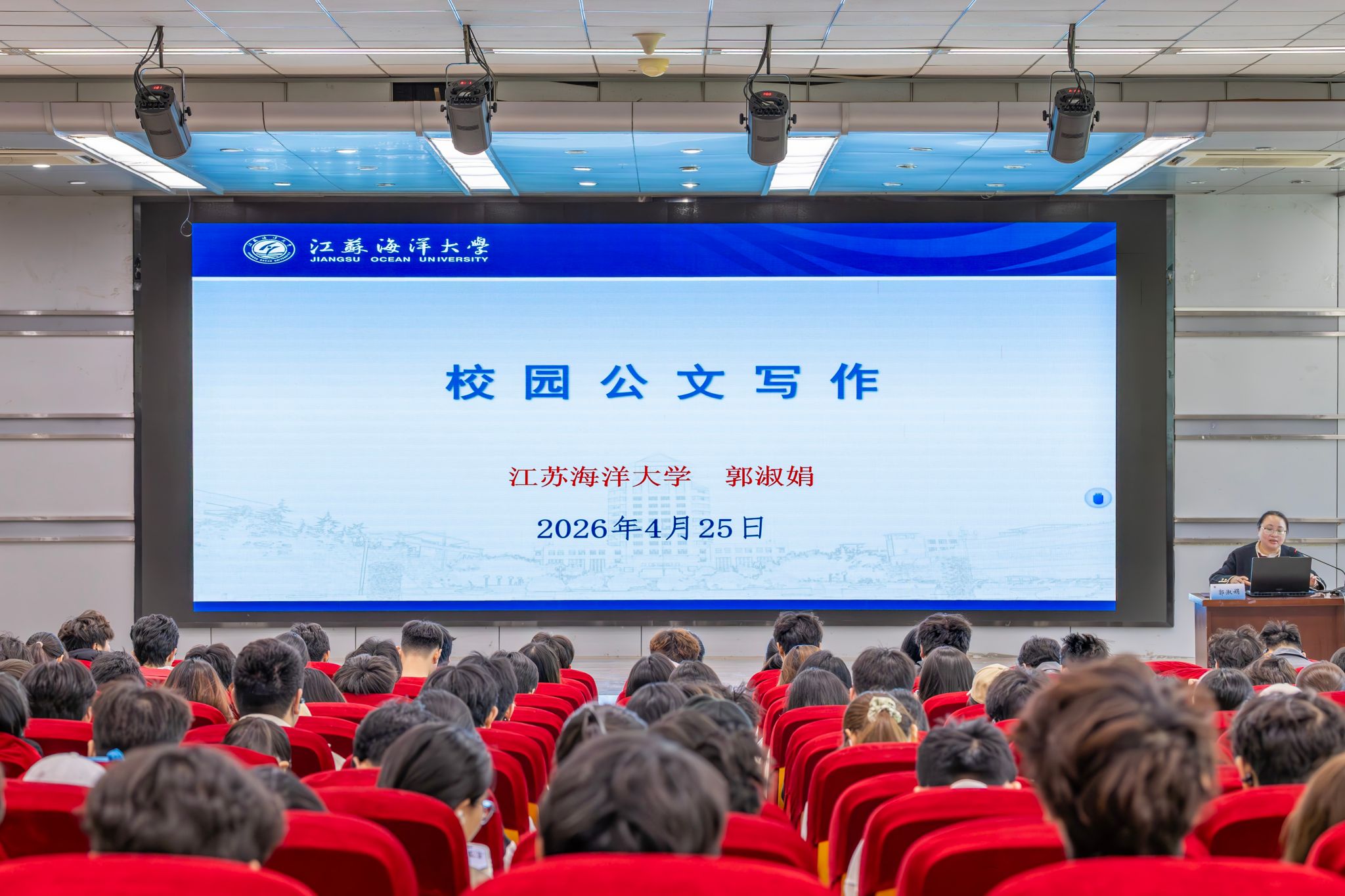文法学院新闻传播系主任郭淑娟围绕公文写作开展专题授课,系统讲解公文眉首、主体、版记三大组成部分,详细解读发文字号、标题构成、语言规范及印章使用等核心要点,结合真实案例拆解通知、请示、决定等常用文种写作要求,重点纠正常见格式错误,帮助参训学员夯实文字功底、掌握公文写作实操技巧。