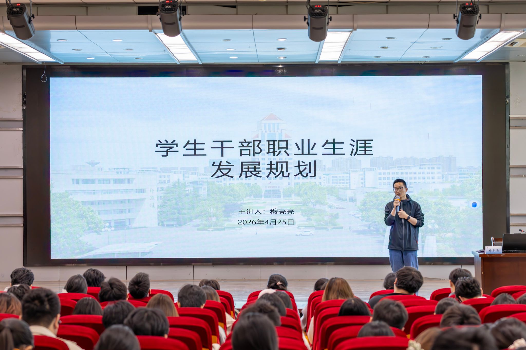 海洋科学与水产学院辅导员穆亮亮结合自身本科、硕士、博士求学经历与多岗位实践经验,分享职业选择与成长心路历程,引导学员重视专业知识学习、合理控制试错成本、坚持体育锻炼,鼓励学员在实践探索中明确发展方向,不断提升综合素养与就业竞争力,以积极心态面对未来发展。