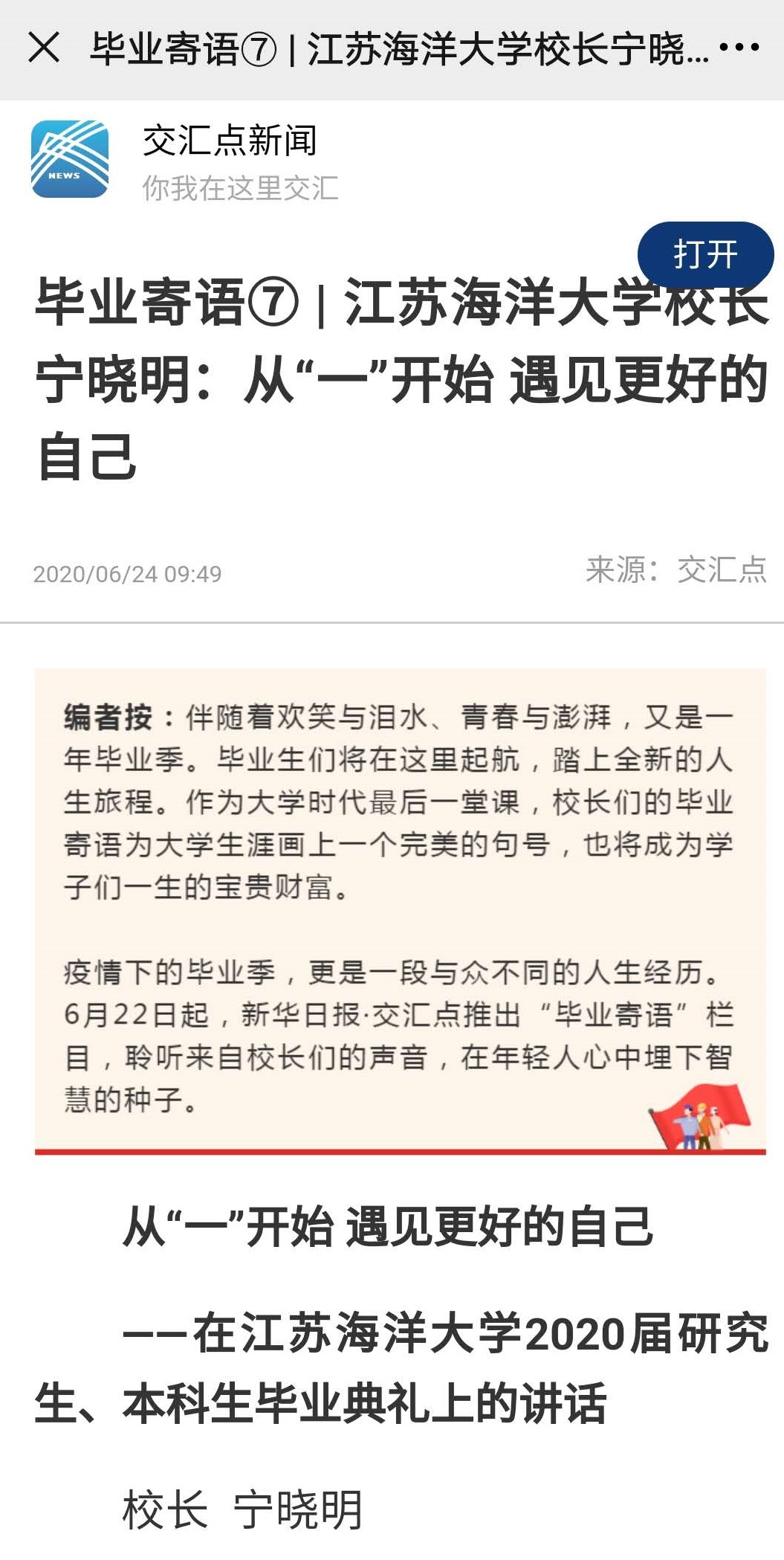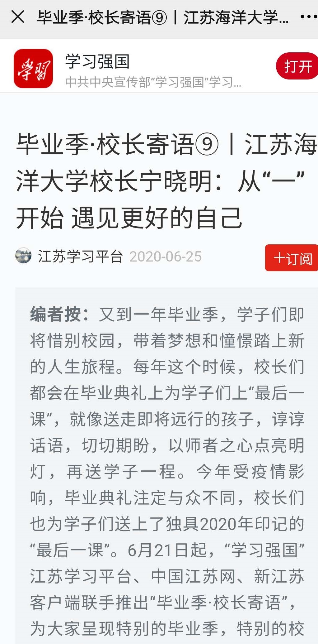 祝2020届毕业生前程似锦、一生幸福!我和江苏海大永远爱你们!