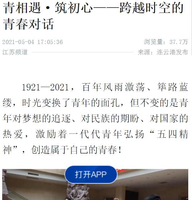 2021年是中国共产党成立100周年,当下党史学习教育正在如火如荼的开展中,连云港报业传媒集团、市革命纪念馆联合团市委、市妇联、江苏海洋大学策划推出“青相遇·筑初心——跨越时空的青春对话”微视频。