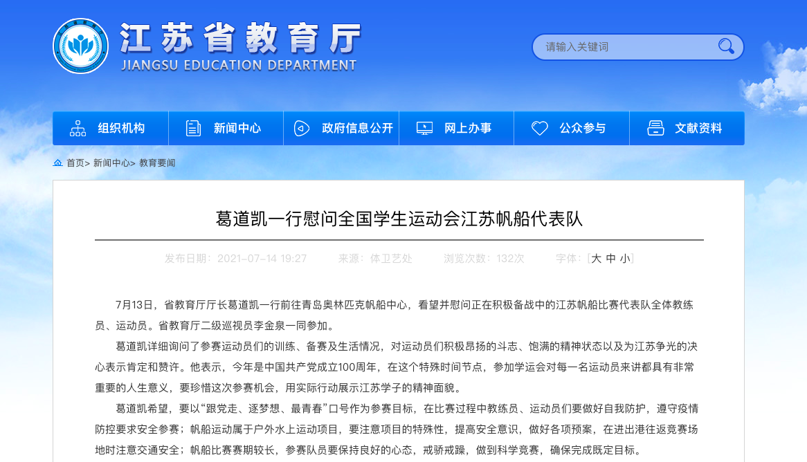 7月13日,省教育厅厅长葛道凯一行前往青岛奥林匹克帆船中心,看望并慰问正在积极备战中的江苏帆船比赛代表队全体教练员、运动员。省教育厅二级巡视员李金泉一同参加。