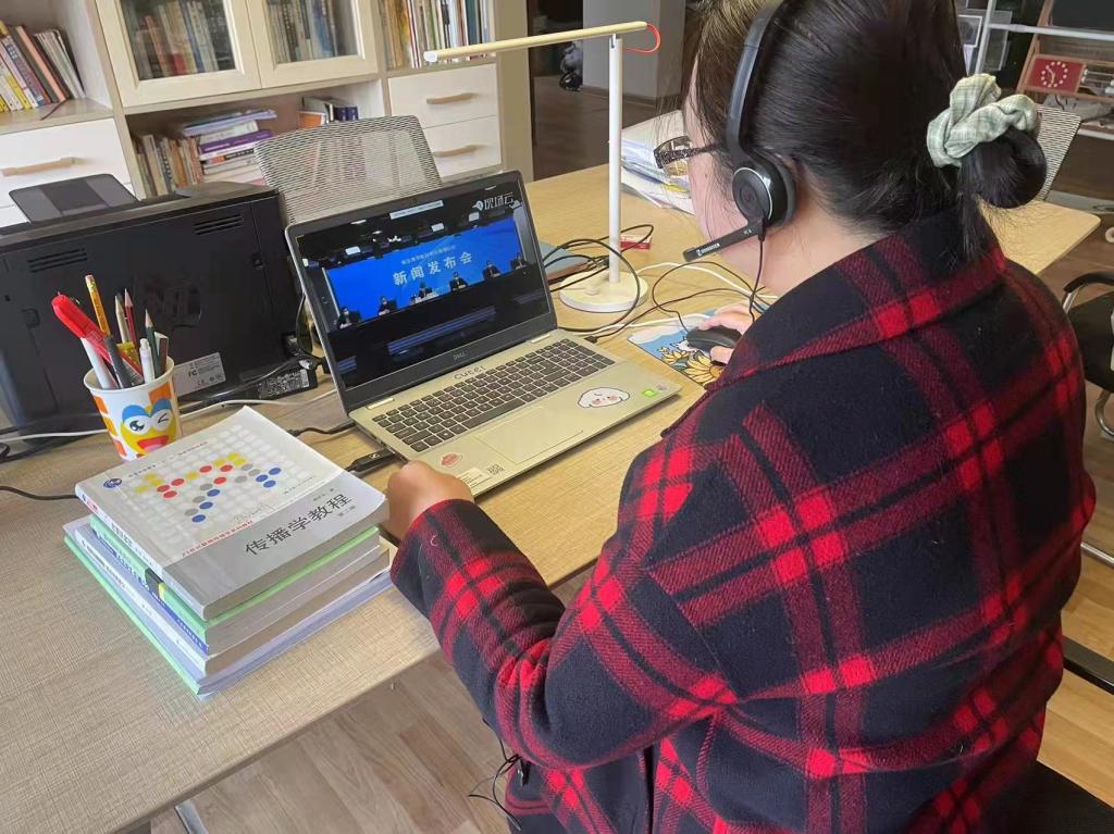 3月17日上午,在连云港市召开本轮新冠肺炎疫情防控工作第十二场新闻发布会上,环境与化学工程学院学生徐慧分享了她参加防疫志愿服务工作和爱心互助活动的经历体会。与此同时,文法学院新闻系郭淑娟老师主讲的“传播学概论”课也在同步进行,她组织学生们实时收看了这场新闻发布会,而且给学生们布置了一道“大作业”:“为什么请这位学生参加新闻发布会?这在疫情报道中体现了媒介的什么功能?”对此,一名学生这样说:“徐慧同学说出了我们大家的心里话,如果我们青年都积极参与抗疫,我们的城市就会更有力量。”