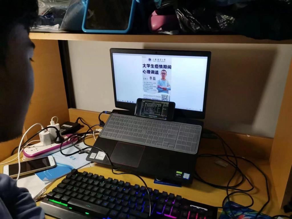 与此同时,心理健康教育中心开通“云”课堂,为师生提供线上心理教学辅导,开设“‘疫’路同行,向阳花开——大学生如何做好压力管理”和“大学生疫情期间心理调适”等专题讲座,内容涉及疫情中的心理成长、情绪和压力管理、人际关系提升等。“云”课堂采用直播的形式实现师生实时互动,有针对性地满足不同学生群体的心理健康需要。讲座过后学生们纷纷表示获益匪浅,预科部文预0211班孙永慧说:“听了讲座后,了解到许多心理健康知识,学会了调节情绪的方法,尝试用自我暗示、适度宣泄和放松训练等方法来缓解压力,收到了良好的效果。”