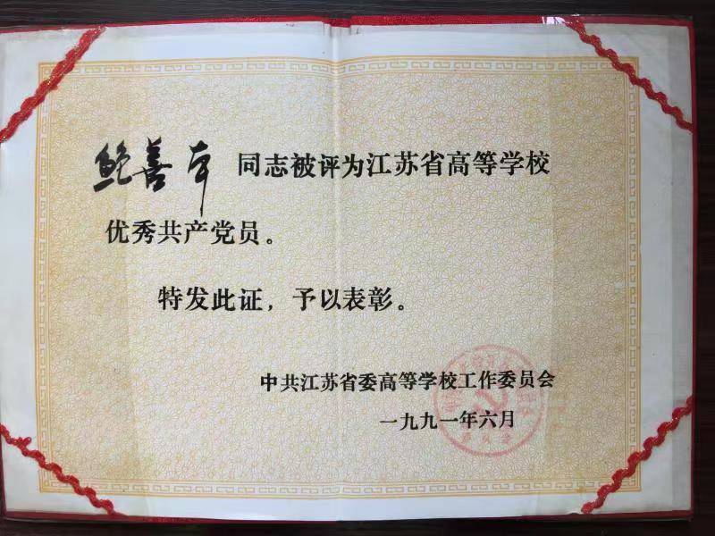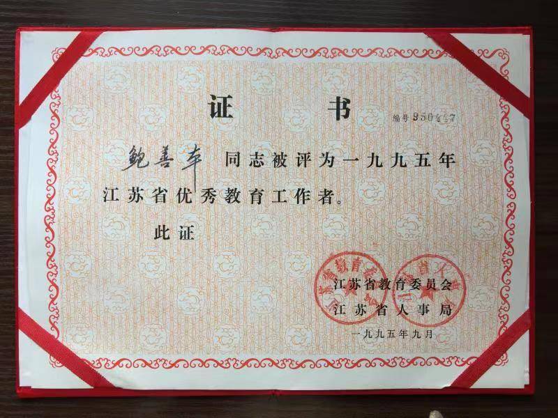 鲍善本将平凡的一生献给了教育事业,先后获得“江苏省优秀教育工作者”“连云港市劳动模范”等荣誉称号,多次被评为“优秀共产党员”。