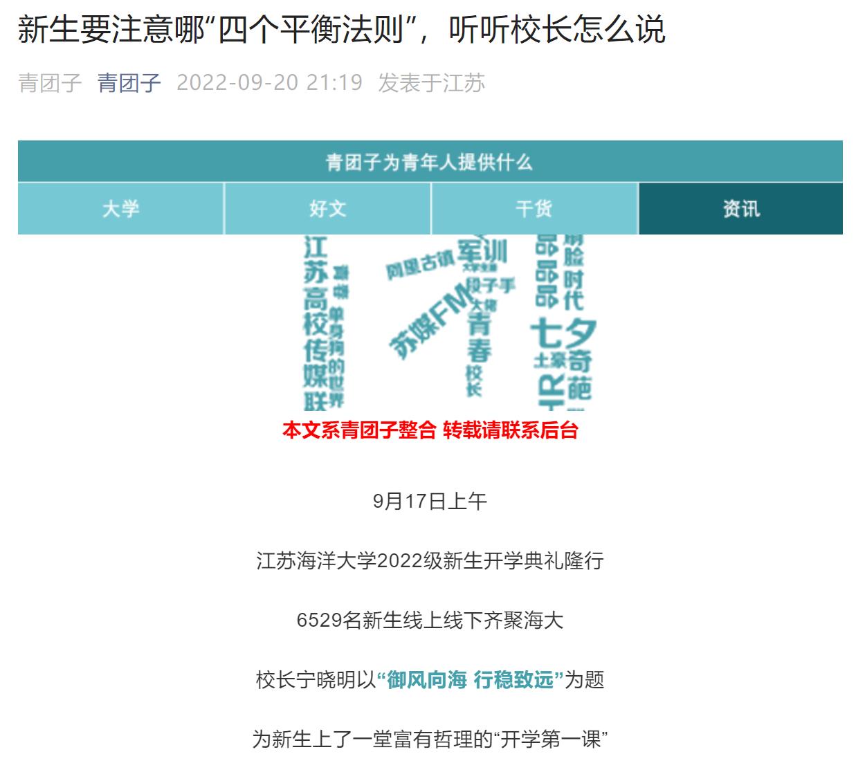 江苏海洋大学2022级新生开学典礼隆行