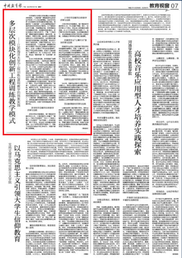 江苏海洋大学是江苏省属全日制普通本科高校。“工程训练”课程是面向全校学生开设的一门公共必修课程。2020年印发的《江苏海洋大学劳动教育实施方案》,明确依托“工程训练”公共必修课程系统开展劳动知识和劳动技术教育。为了增强学生学习兴趣,丰富课程内涵,学校持续优化训练教学内容,改革教学组织模式。学生先通过工程认知实习,了解“工程训练”课程设置的训练模块、教学内容、组织模式、考核方式等,通过网上选课系统选择自己心仪的训练项目。经过模块化教学改革与实践并融入劳动要素,学生设计制作了造型各异、功能不同的作品。近几年的实践证明,“工程训练”课程教学改革不仅增强了学生的工程素质与创新创业能力,还进一步激发了学生的家国情怀,强化了学生的劳动素养,实现了工程训练由“以教师为主”向“以学生为主”的转变、学生由“被动训练”向“主动训练”的转变。