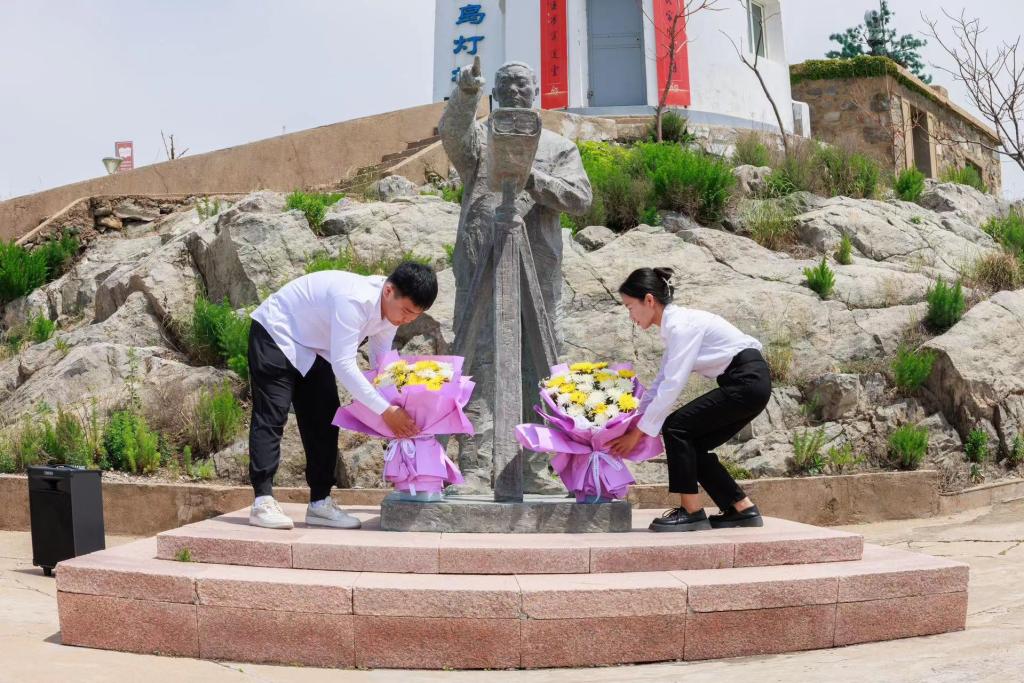 英雄虽已去,但精神永存。学生党员代表为王继才铜像献上鲜花,静静肃立,深深鞠躬,表达对王继才烈士的敬意,以此缅怀楷模,传承爱国奉献的守岛精神。