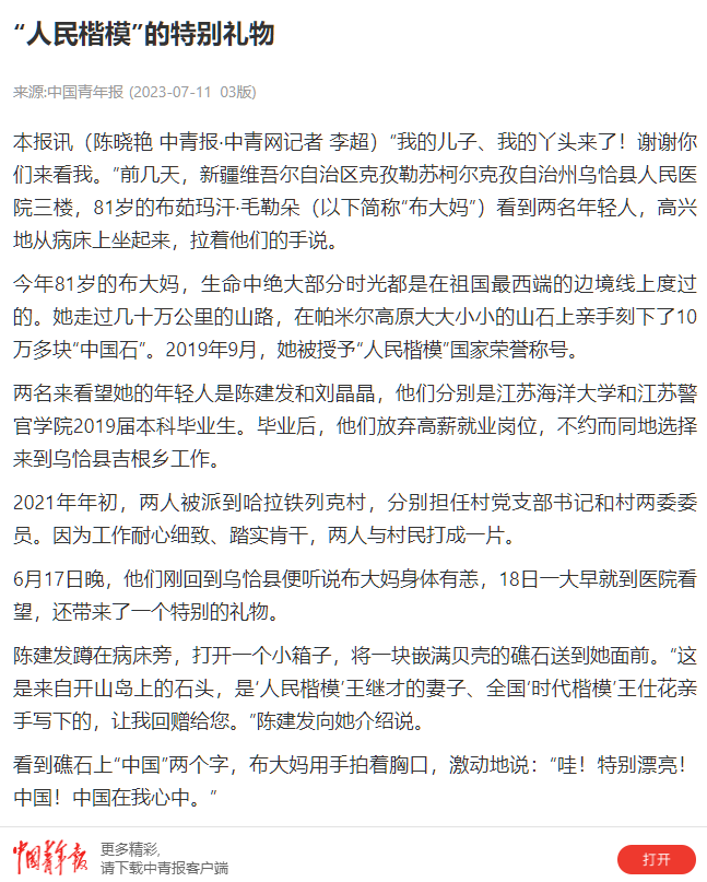新闻链接:https://s.cyol.com/shuzibao/cmsfile/cms_json/zqzx/Newspaper/2/2023-07-11/Content/nw.D110000zgqnb_20230711_7-03.html?isshow=1