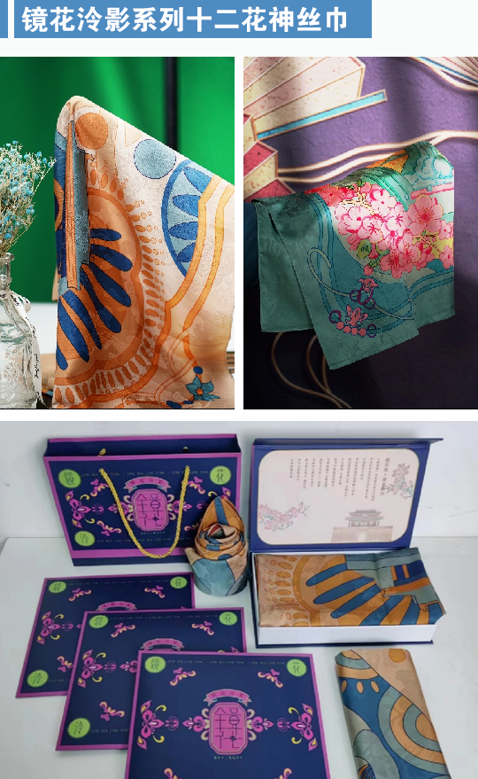 “镜花泠影”系东家智创团队自主打造的文旅融合文创品牌,缘起海州古典白话小说《镜花缘》,围绕地方文化元素深耕,打造镜花国潮市集、饰品、创意生活用品等产品。先后推出镜花泠影系列十二花神丝巾、缘定海州十二花神盲盒雪糕等文旅融合产品,满足多元化消费需求,带来潮文化互动演绎的社会效果。