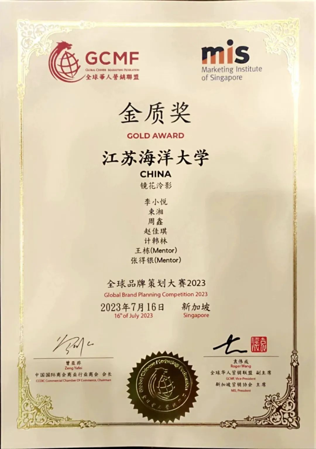 近日,全国高校商业精英挑战赛“中图科信杯”品牌策划竞赛暨(新加坡)全球品牌策划大赛全球总决赛在新加坡举行。来自江苏海洋大学的东家智创团队师生在比赛中脱颖而出,荣获金质奖。