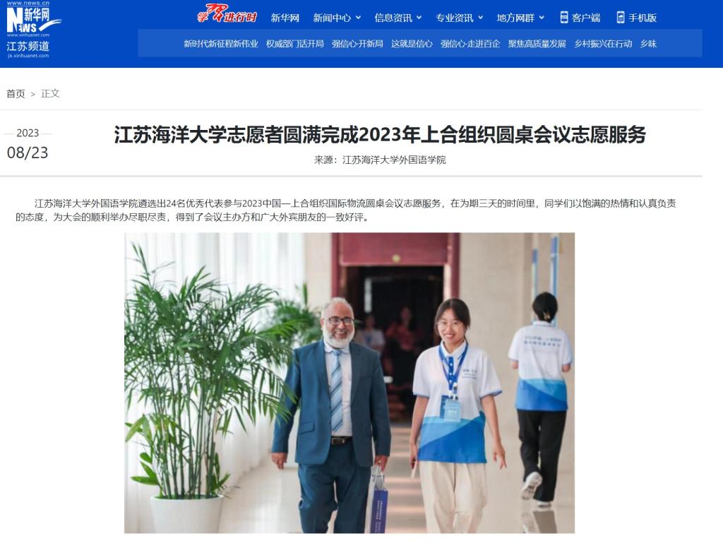 江苏海洋大学外国语学院遴选出24名优秀代表参与2023中国—上合组织国际物流圆桌会议志愿服务,在为期三天的时间里,同学们以饱满的热情和认真负责的态度,为大会的顺利举办尽职尽责,得到了会议主办方和广大外宾朋友的一致好评。