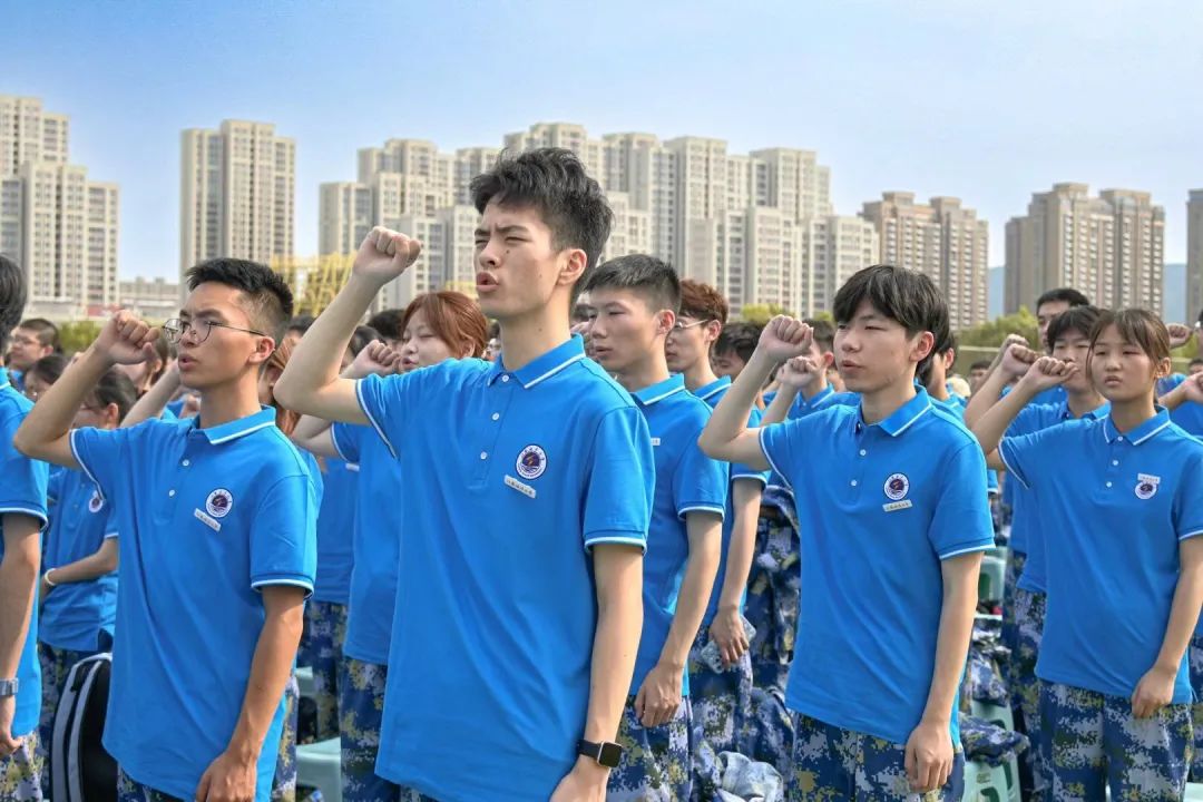 (校学生会执行主席孔令洲带领新生进行入学宣誓)
