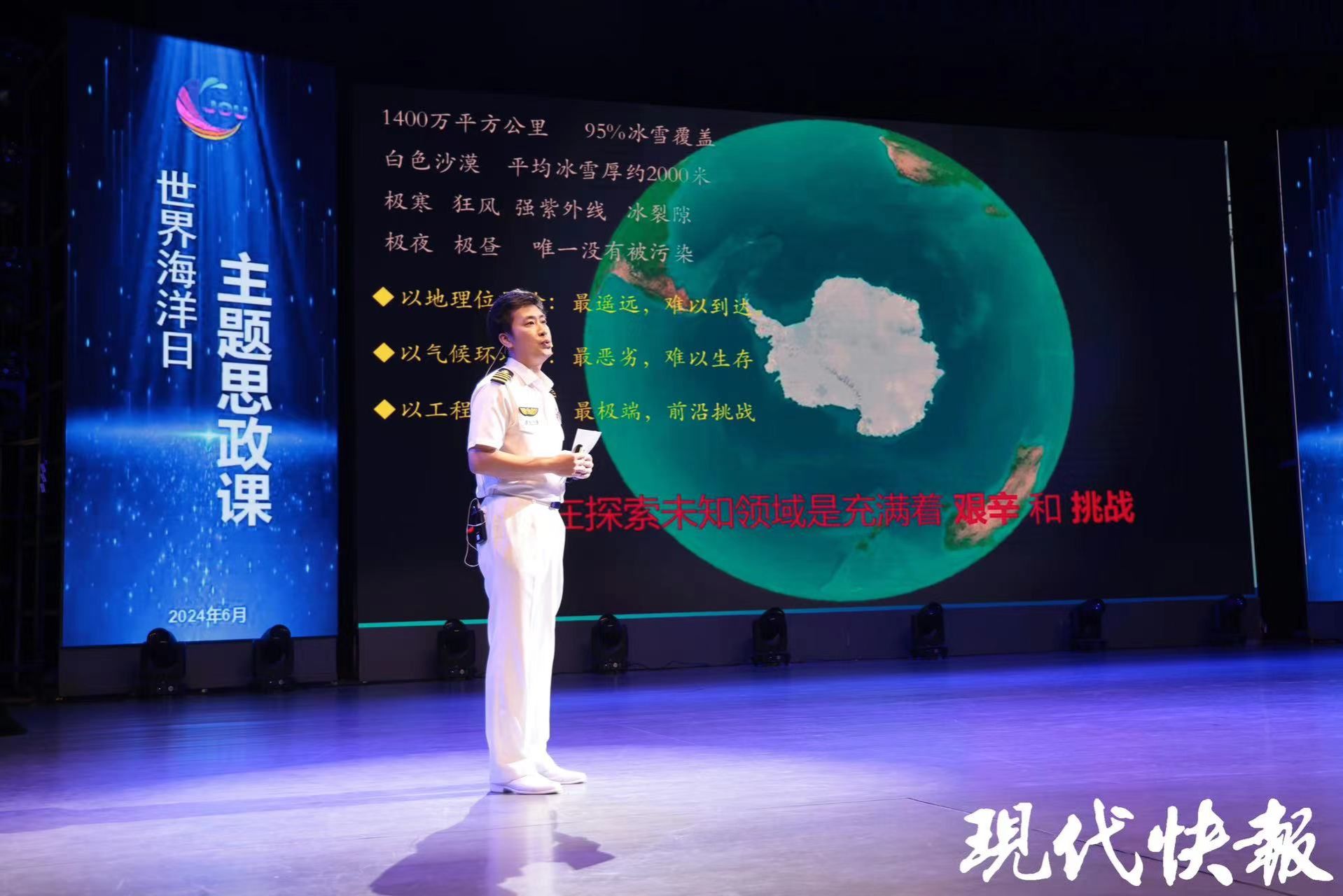 “雪龙2”号如何实现艏艉双向破冰?珊瑚礁的白化如何挽救?在祖国最南端的三沙市工作是怎样的体验?6月5日,江苏海洋大学邀请“雪龙2”号船长肖志民、国家海洋博物馆科普工作者王玉,与校友代表、马克思主义学院青年教师共同讲授“世界海洋日”主题思政课,近万名师生线上线下共同聆听,被“雪龙2”号勇斗风雪踏浪破冰的勇毅、扎根基层卫国戍边青春风采感动,也被大自然馈赠的美好宝藏深深吸引,为投身乡村振兴一线接续奋斗的身边榜样倍感自豪。