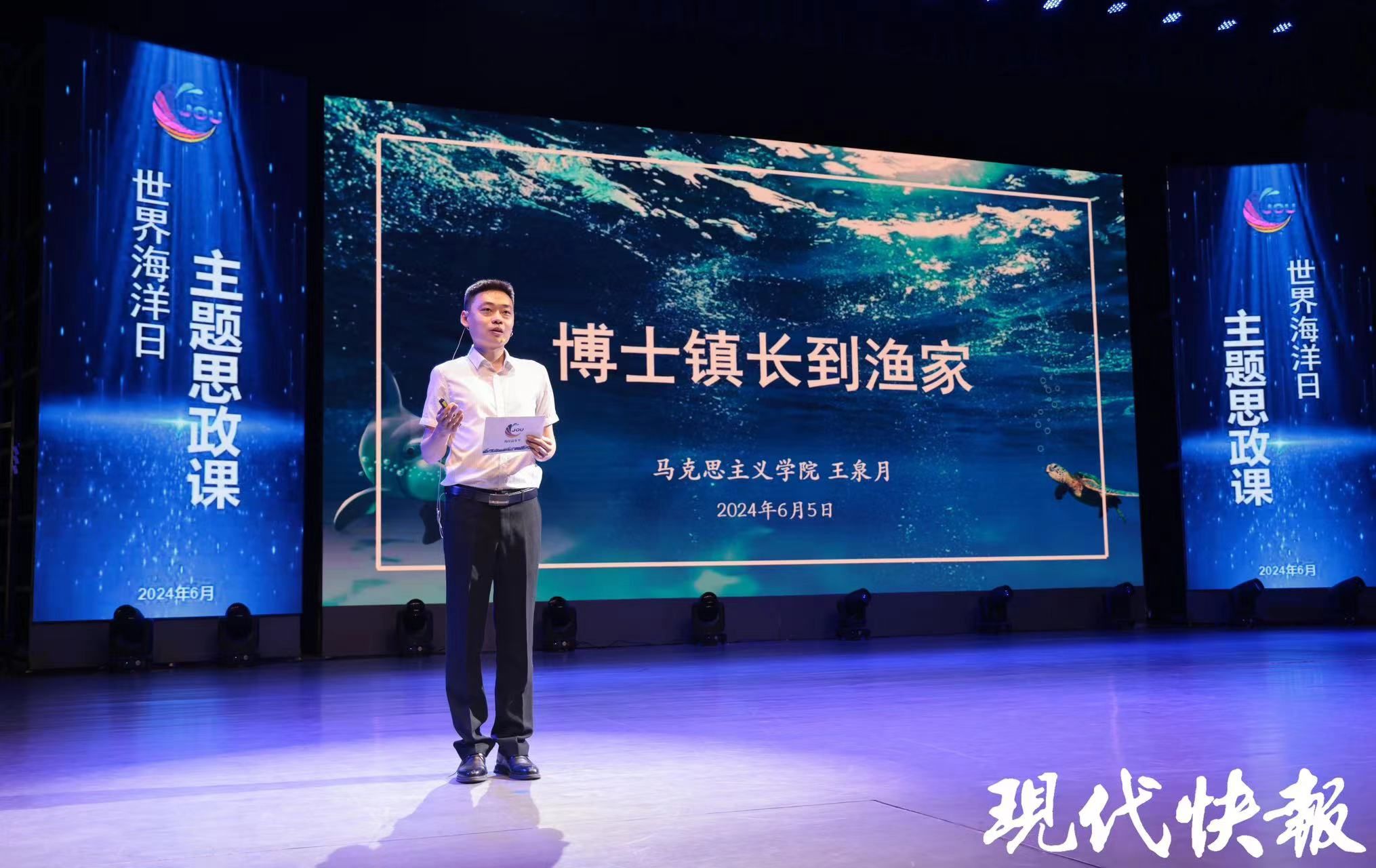 “世界海洋日”主题思政课是江苏海洋大学紧扣海洋办学特色和人才培养目标打造的以海洋为主题的大思政课,学校邀请海洋领域知名人物、专家学者、青年榜样,围绕发展海洋经济、保护海洋生态环境、弘扬海洋文化等主题,用发生在祖国大地上一个个“有温度”,充满“烟火气”的生动故事,用发生在学生身边的青年榜样故事做教材,将家国情怀、创新精神、海洋意识教育融入师生喜闻乐见的歌曲快闪、知识竞答、海洋微科普、思政微课、青春故事会等活动形式,引导青年学生握紧建设海洋强国的接力棒勇毅前行。(通讯员:张帆 陈晓艳 杨平)