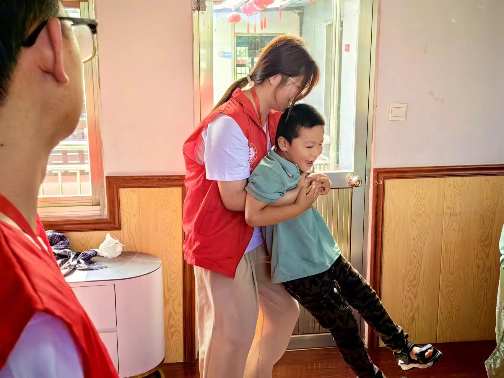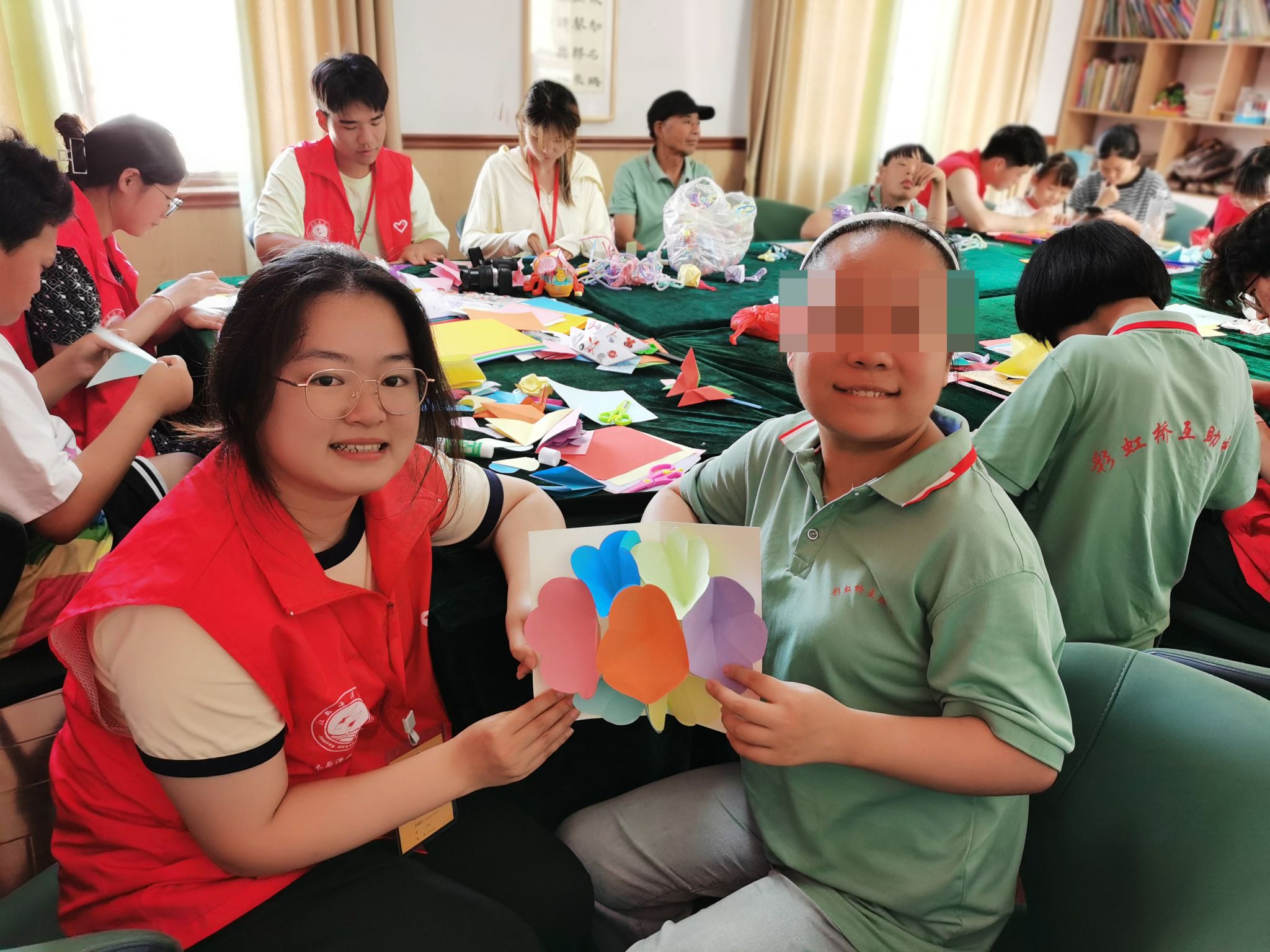 悉心照顾、永不言弃是众多残障家庭的精神支柱。带着孩子参加暑托班的王奶奶说,“孩子患有脑瘫,父亲早早因病离世,妈妈也离家出走。孩子现已15岁,天天由她一人带着。平时,基本都是放在家中看电视、看手机,现在每天来彩虹桥参加暑托班,成为孩子最开心最快乐的事情。”