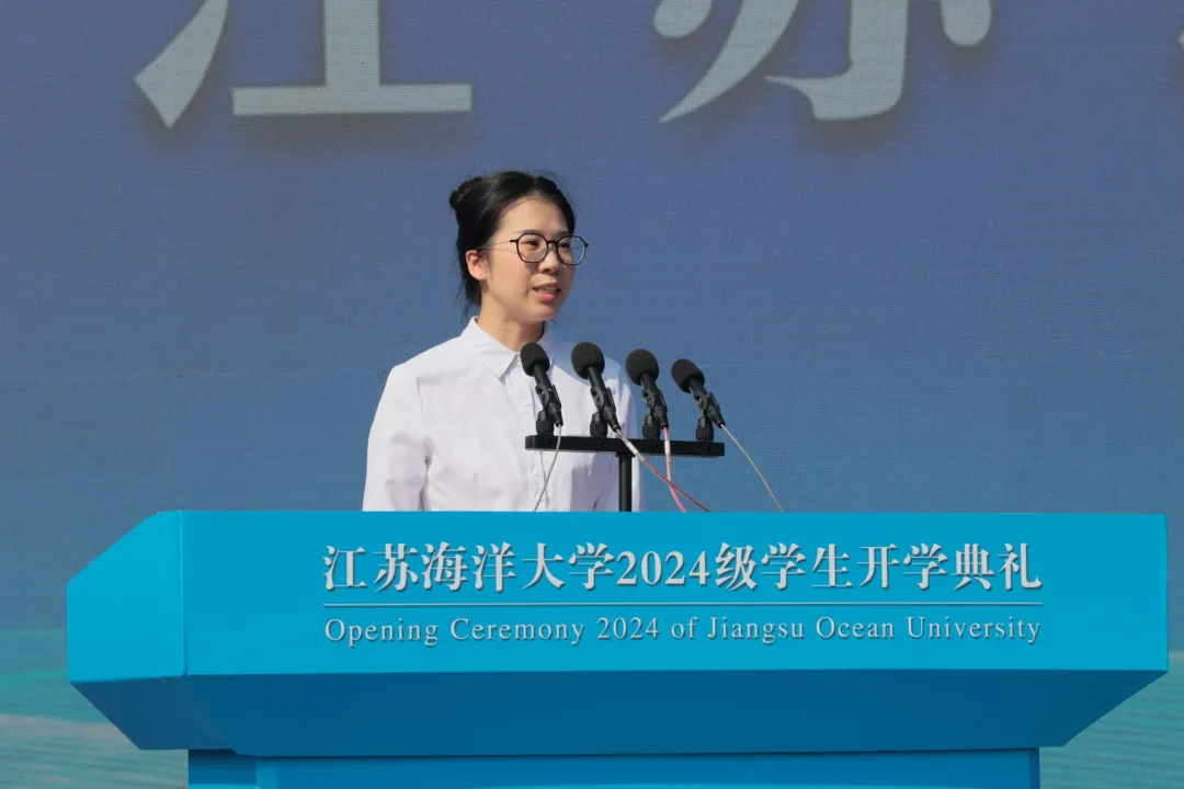 艺术设计学院本科生徐璐媛、机械工程学院硕士研究生钮硕硕分别作为老生、新生代表发言。他们表示,要慎始而行、勤学为本,知行合一、实践为要,提升修养、全才并蓄,以昂扬的斗志和饱满的热情,在投身海洋强国建设中谱写青春之歌。全场师生齐唱江苏海洋大学校歌《蔚蓝的信仰》。婉转悠扬的校歌旋律回荡于校园上空,学子们心怀蔚蓝信仰,于江海大扬帆起航。