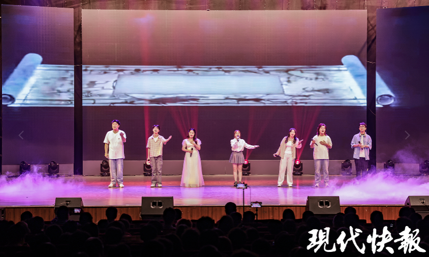 这堂大课共分为《坚守初心》《改革创新》《强国复兴》三个篇章,以3名青年教师思政主题宣讲开篇,将歌曲、舞蹈、朗诵、情景剧与党的创新理论宣讲相融合,激昂奋进的旋律、引人深思的歌词、感人至深的故事、铿锵有力的舞蹈,引领现场师生跨越历史岁月与信仰对话,在可听、可见、可感的“音乐思政课”中,感受时代脉搏,坚定理想信念,在阔步新征程上挺膺担当、至诚报国。
