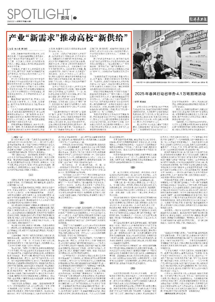 “当前教育体系存在‘供给侧’与‘需求侧’脱节、高校学科设置滞后于产业变革等突出问题。高校加大国家急需前沿技术和新兴业态方向的本科招生,不仅有助于缓解人才短缺问题,满足国家战略需求,还有望吸引更多的优秀学生投身其中,推动相关技术和产业发展。”冯宗宪表示,“下一步产教融合的核心在于‘打破边界、重构价值,协同发展’,政府需以制度创新释放活力,高校需以需求导向重塑培养模式,企业需以长期主义参与育人,三方协同、久久为功。”