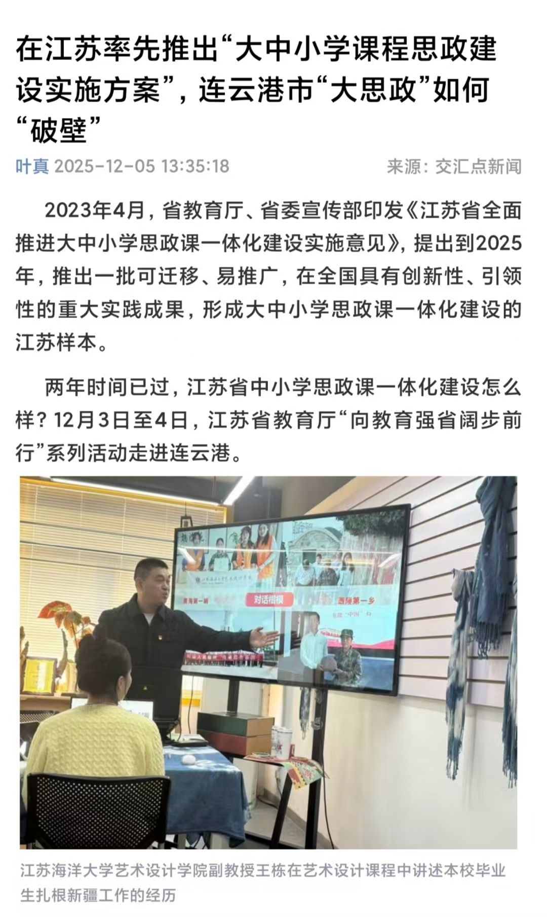 2024年,连云港市委教育工作委员会在全省率先印发《连云港市全面推进大中小学课程思政建设实施方案(暂行)》,提出让所有学校、教师、课程都承担好育人责任,促进各类课程与思政课程同向而行,构建“大思政课”工作体系。这种创新模式“大思政”谁来讲、怎么讲、讲什么?记者进行探访。